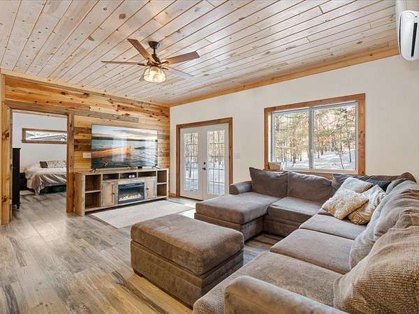 Welcome to this beautifully crafted 3-bedroom, 2-bath patio home set on 3.02 private acres in Backus, MN--offering peaceful country living with modern comfort and exceptional functionality. This open-concept home features tongue-and-groove ceilings and accent walls that add warmth and character throughout the living spaces. The kitchen is designed for both everyday living and entertaining with rich hickory cabinets, a large center island, stainless steel appliances, and a sunlit window overlooking the property. The spacious primary suite includes a walk-in closet and private bathroom with a walk-in shower plus a separate tub/shower combination. A convenient mudroom and laundry/utility room combo sits just off the kitchen, complete with a utility sink and separate exterior access--perfect for rural living. Heating options include in-floor heat, a ductless mini-split, and a cozy wood-burning stove, offering efficiency and comfort year-round. Outside, enjoy excellent curb appeal with a durable and attractive exterior featuring Hardy board, metal, and cedar accents. The impressive 42x40 shed includes a 30x40 heated shop with two garage doors and an additional 12x40 cold storage area--ideal for a workshop, storage, or recreational toys. A dedicated wood shed adds even more convenience.