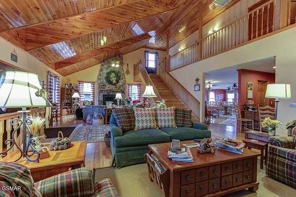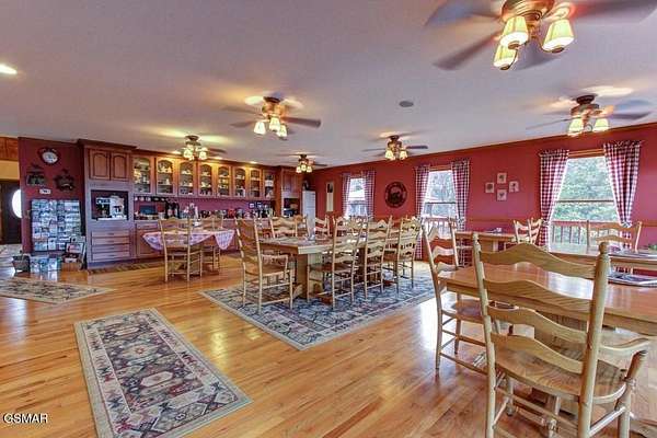 This is one of those properties that just doesn't come along often. Set on a private hilltop with sweeping views from Shields Mountain to English Mountain, this 13-suite lodge was built to impress--and it already performs like it averaging almost $800,000 gross revenues over the past 3 years. At the center is a massive great room with a two-story stone fireplace, soaring ceilings, and a statement staircase that immediately sets the tone, while every guest suite is dialed in with private balconies, individual climate control, and high-end finishes--with most featuring fireplaces and several offering private hot tubs, exactly the type of layout large groups actively search for and pay a premium to book. Already positioned to host weddings and large group events, but that's just scratching the surface--there's significant upside to expand those offerings while adding additional structures and amenities to elevate the guest experience and drive even stronger revenue. The main level flows into a spacious dining area with panoramic views, a full service bar, and direct access to an oversized covered deck, while the commercial-grade kitchen with double gas ranges, oversized island, and serious prep space is built to handle volume for events, retreats, or high-end group stays. Downstairs adds even more flexibility with a large meeting space, fitness room, and a separate 2BR/2BA living quarters that can easily be reimagined into a theater, game room, or additional revenue-producing space. Outside, the property separates itself even further with a dedicated grilling pavilion featuring screened dining, a firepit gathering area, and an additional two-level cabin with whirlpool suites that can operate independently or as part of the larger rental experience. Plenty of parking outdoors for all your guests. Currently operating as a successful upscale boutique hotel/STR, the revenue story here is already strong, but the real opportunity is operational, as transitioning from a labor-heavy on-site staffing model to a professional third-party property manager can significantly reduce fixed overhead, streamline operations, and scale bookings across multiple platforms--turning an already high-performing asset into a far more efficient and profitable investment. Located just minutes from Dollywood and the heart of the Smokies, this is a rare chance to own a true destination property with both proven income and clear upside, and if you're looking for something that stands out in a crowded STR market, this is it. Property website is.