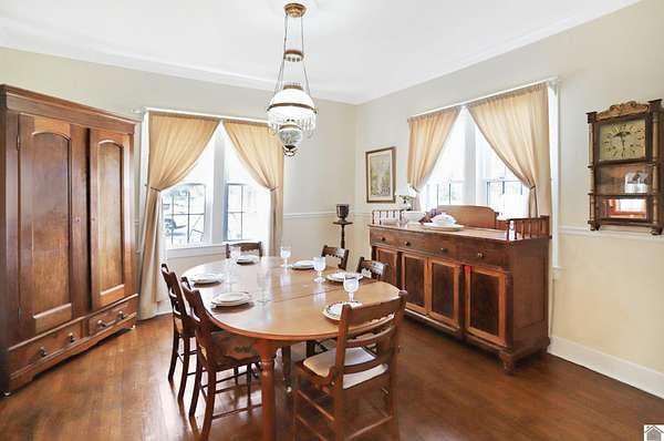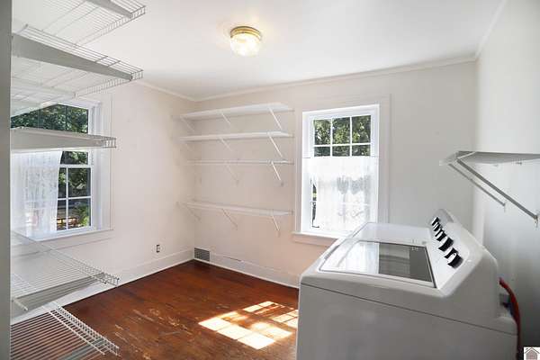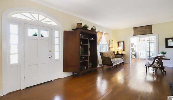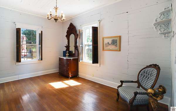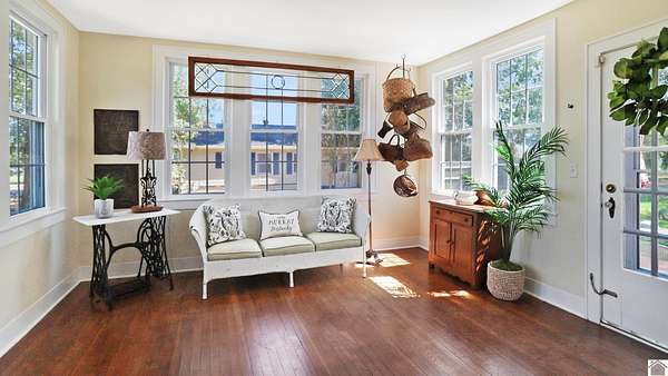 Discover a unique piece of Murray with this charming home situated on nearly 2 acres just outside the city limits. Featuring original hardwood floors and 9.5-foot ceilings on the main level, this property blends timeless character with thoughtful updates. The remodeled main bathroom offers modern comfort, while the spacious floor plan includes 4 bedrooms - one conveniently located on the main floor. A large living area with a cozy gas fireplace flows into a bright sunroom, creating the perfect space to relax or entertain. Original light fixtures, a formal dining room, and classic details throughout showcase the home's history and charm. With its generous lot size and unbeatable location close to town, this home is truly one-of-a-kind.