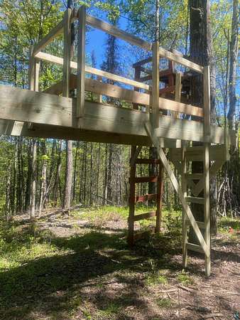 Cozy Cabin on 8+ Acres – Backs Up to 280 Acres of DNR Land Escape to the woods with this charming 240 sq ft cabin retreat situated on 8+ acres, directly bordering 280 acres of prime DNR land, offering exceptional hunting, privacy, and outdoor recreation right out your back door. The cabin includes a welcoming front porch and an additional 92 sq ft loft, ideal for extra sleeping space or storage. Inside, the layout is designed to maximize comfort and functionality with built-in bunk beds in the bedroom and a convenient Murphy (drop-down) table in the living room, allowing the space to easily transition between dining, relaxing, and gathering. The well-insulated cabin is heated with a propane stove and furnace, making it comfortable for use throughout the year. A 240-watt Jackery solar panel system powers the LED lighting and is generator ready for additional power needs. Step outside to enjoy the 14' x 18' floating deck, perfect for relaxing, cooking out, or spending time with friends after a day outdoors. The property also features a gravel driveway with a direct turn-off from US-2, allowing for easy access even during winter, spring, and fall conditions. Additional improvements include a separate outhouse with a composting toilet and shower room, an attached lean-to for storage, a small wood storage shed near the fire ring, and a cedar-topped outdoor sink for convenient cleanup. A trail runs from the driveway back to established deer stands, making this an excellent setup for hunters. The property also offers several potential building sites with beautiful views, providing opportunities for future expansion or a permanent home. Whether you're looking for a hunting basecamp, weekend getaway, or private off-grid retreat, this property offers a unique combination of comfort, privacy, and access to public land.