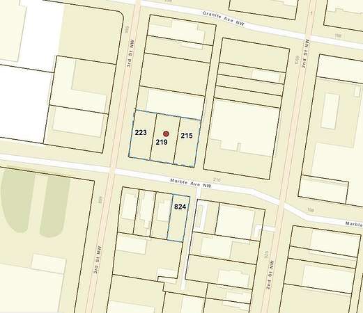 Great parking lot property! 4 parcels of land, 74 parking spaces in the heart of downtown.215 Marble Ave NW. UPC# 101405826820443403 219 Marble Ave NW UPC# 101405826320543402223 Marble Ave NW UPC# 101405825820643401 824 3rd St NWUPC# 101405836618842614Best way to contact listing broker is texting mobile phone.