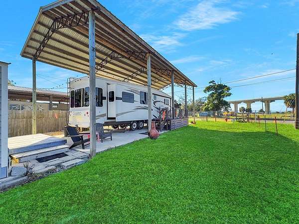 Charming Coastal RV Retreat!! Discover the perfect blend of comfort and coastal convenience at 215 Angel Fish Street, ideally located just minutes from Downtown Port St. Joe and St. Joe Bay. This 0.11-acre corner lot features a covered pole barn with concrete pad, fully insulated and finished outbuilding with a living area, half bath and a sitting deck. This property is ideal for your RV, boat, or beach toys, and comes equipped with electric, water, and sewer hookups--ready for your next Gulf getaway. Everything is done for you - RV is included in this wonderful opportunity. Enjoy peaceful mornings with Bay breezes and easy access to public boat launches, beaches, and the Intracoastal Waterway. The property is fully fenced for privacy, with beautiful tropical landscaping and plenty of room for entertaining or future expansion. Whether you're looking for a vacation retreat, investment rental, or full-time coastal living, this property offers endless potential in a quiet, golf-cart-friendly community. Located in the Highland View neighborhood--no HOA, close to local seafood markets, marinas, and just a short drive to Cape San Blas and Mexico Beach. Bring your RV or your builder and make this your slice of paradise on the Forgotten Coast!