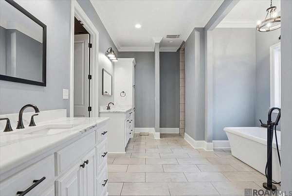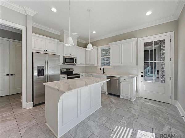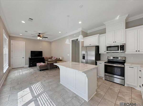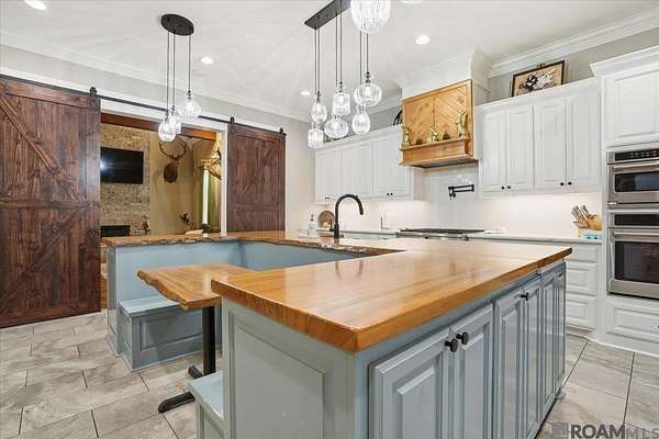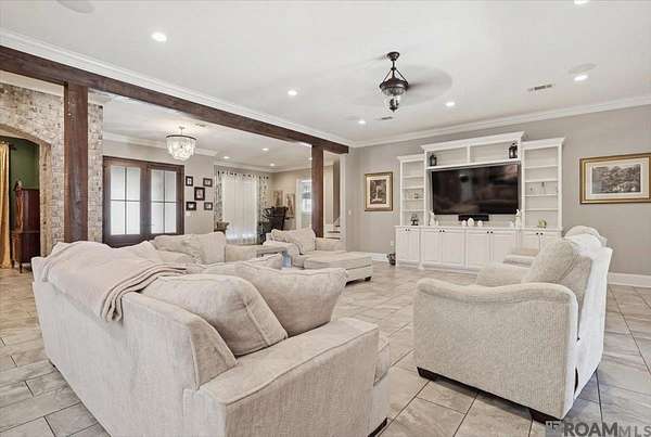 - Beamed Ceilings, Breakfast Bar, Built-In Features, Cathedral Ceiling(s), Ceiling 9'+, Ceiling Varied Heights, Crown Molding, High Speed Internet, In-Law Floorplan