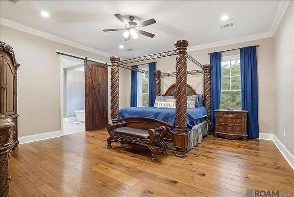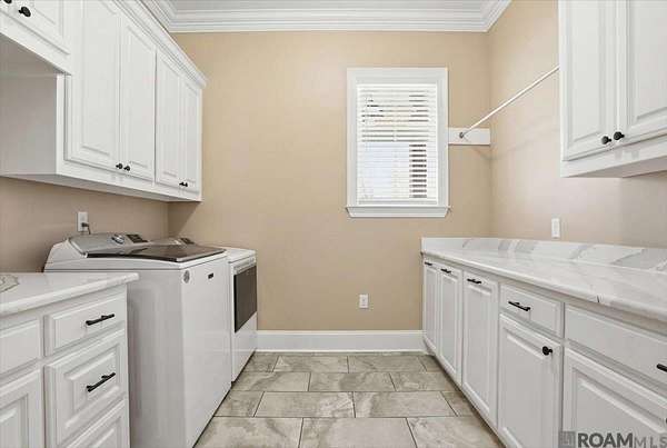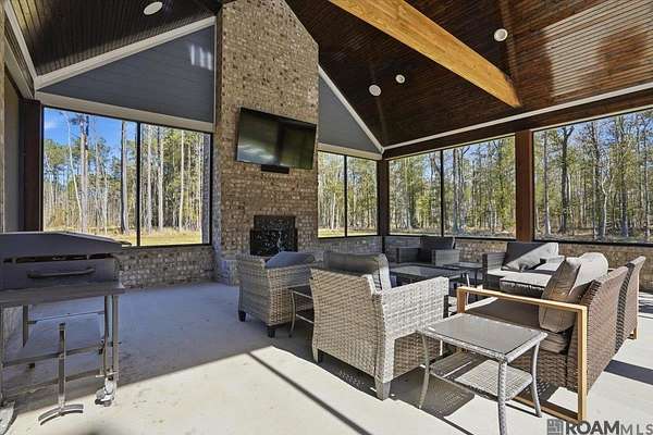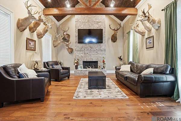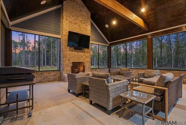 This stunning custom-built home offers exceptional craftsmanship, thoughtful design, and every amenity you could want. With 5,210 square feet of living space--including a 724 sq. ft. private in-law suite--this 4-bedroom, 5-bath property is ideal for comfortable living and entertaining. The open family room features soaring 10-foot ceilings, rich crown molding, a built-in entertainment center, and French doors and windows that overlook the porch, pool, outdoor kitchen, and screened entertainment area. The chef's kitchen is a showstopper, boasting a custom island with table and bench seating, quartz countertops, decorative backsplash, soft-close cabinetry, under-cabinet lighting, stainless steel appliances, and a 36" six-burner gas range with hood. Just off the kitchen, the man cave/media room showcases a cathedral ceiling with pine beams, tongue-and-groove beadboard, and a cozy wood-burning fireplace. The spacious primary suite offers a spa-like bath with a freestanding garden tub, split his-and-hers vanities, a separate shower with seating, and an oversized walk-in closet with built-ins. Upstairs are three generously sized bedrooms--two sharing a Jack-and-Jill bath and one with a private bath. Downstairs amenities include a large laundry room, storage room, and a dedicated dog room with kennel space and dog wash. The in-law suite features its own one-car garage, living room, kitchen, bedroom, bath, and laundry. Additional highlights include a three-car garage, a 60x50 heated and cooled shop, generator wiring, (propane gas Harring Gas in Clinton), four on-demand hot water heaters (2023 models), and more. Truly too many features to list--this home must be seen to be fully appreciated.