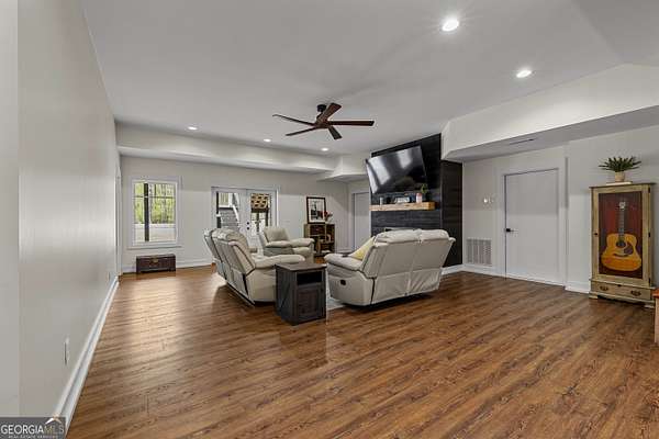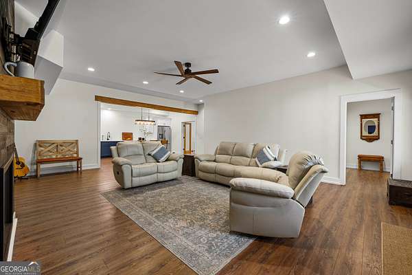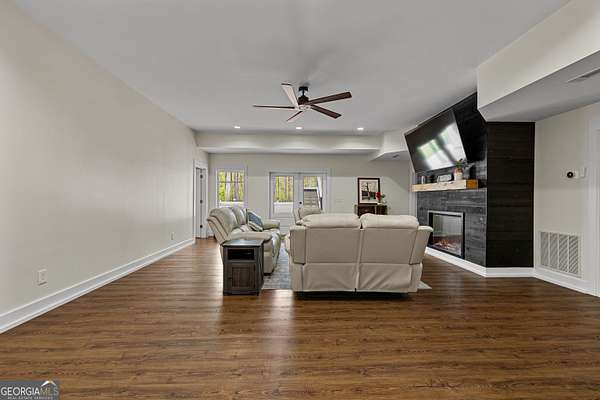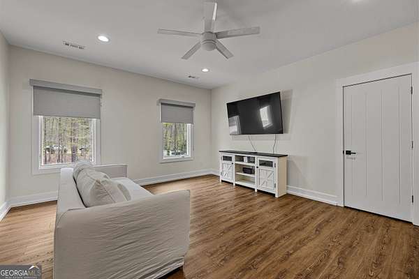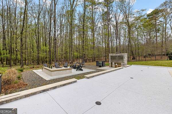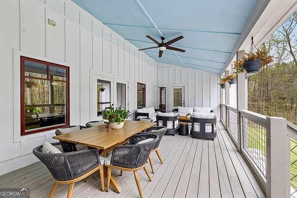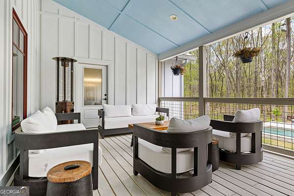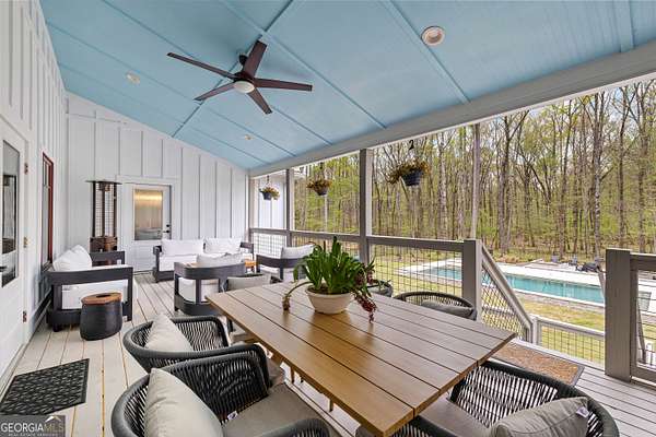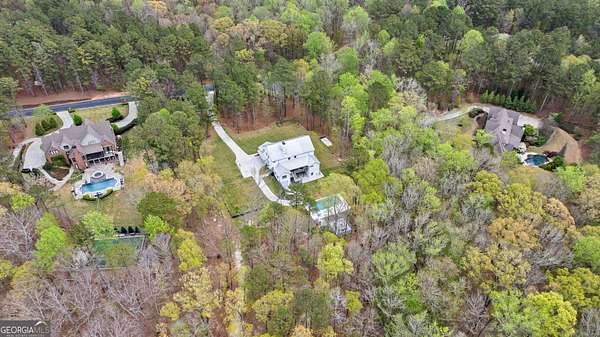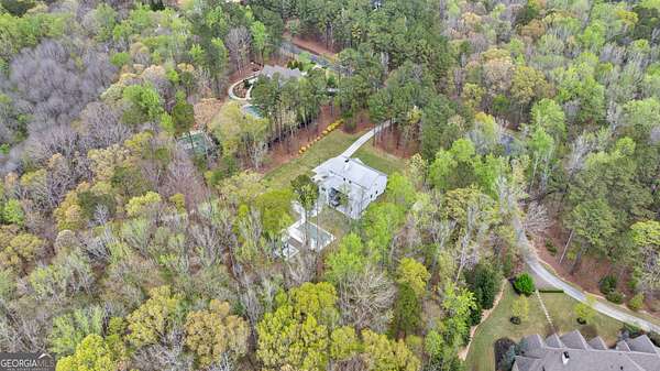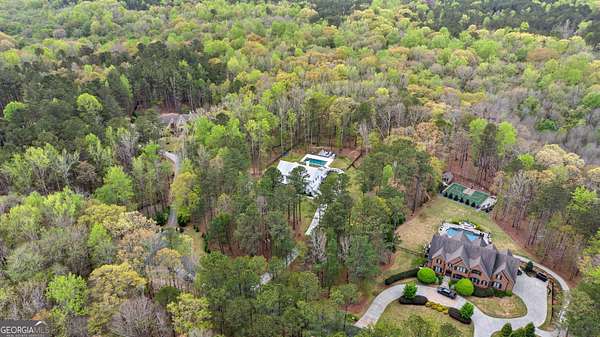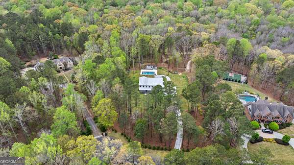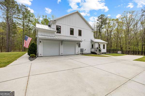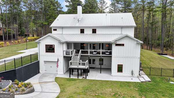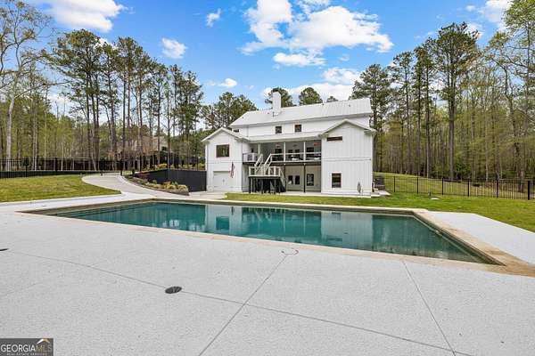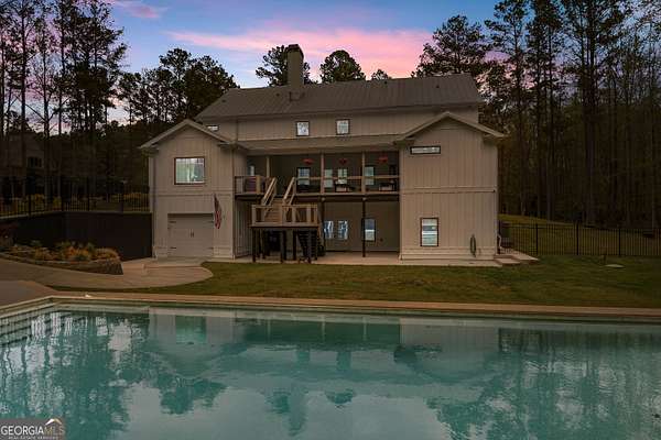 Set on 6.55 secluded acres in the coveted McIntosh school district, this extraordinary modern farmhouse estate is a rare offering, blending refined craftsmanship with resort style amenities and thoughtful upgrades throughout- beginning with a stunning main level kitchen appointed with all new KitchenAid appliances, a double oven, oversized island, a generous seating area, and an expansive walk in pantry, all flowing seamlessly into an elegant living room with a beautiful wood burning fireplace and a formal dining room that seats twelve. The luxurious main floor primary suite features three spacious walk-in closets with custom systems added in 2022. The primary bathroom features dual vanities, a tile bathroom, and private access to the newly refinished deck. The upper level offers four bedrooms, spacious walk in closets, and two modern bathrooms complete with tile finishes and towel warmers. There is also and a versatile flex space that could be used for a home office or storage. Upstairs you will also find a convenient laundry chute. The full finished basement has it's own private entrance-and was recently remodeled to include a full kitchen with island, oven, dishwasher, coffee bar, and pantry. This space also has a large living room with its own fireplace, two bedrooms, a full tiled bathroom, and a dedicated laundry area. The third garage is located downstairs. This space can be used as a garage or a flex space. The recently renovated basement is perfect for multigenerational living or a private in-law suite. Outdoor living is elevated by a heated pool that was installed in 2022, a recently added 500lb sand filter, and a RO/saltwater cell to make a ozone salt water filtered pool. This is complemented by a firepit, illuminated concrete pad with BBQ, updated landscaping, private wooded trail and a nine hole frisbee golf course. This is a home where you can make so many memories in your back yard! Don't forget to take a peek at the hidden tree house in the woods! Additional upgrades include new flooring upstairs and in the basement, refinished pine flooring on the main level, reverse osmosis systems in both kitchens, new lighting and fans, fresh new paint throughout and the finished basement. This home also offers dual fuel heating (ensuring year-round comfort), a climate controlled attic, aluminum clad casement windows, and a 50 year metal roof. Located in the exclusive Platinum Ridge community-an enclave of just 34 estate lots with custom homes and protective covenants-this exceptional property offers unmatched privacy and luxury. This is a rare opportunity to own an estate lot with golf cart accessibility to Peachtree City!!!!!