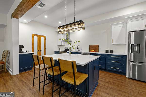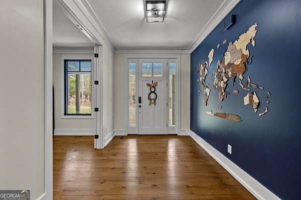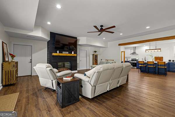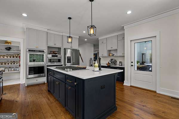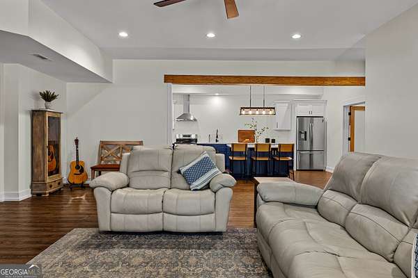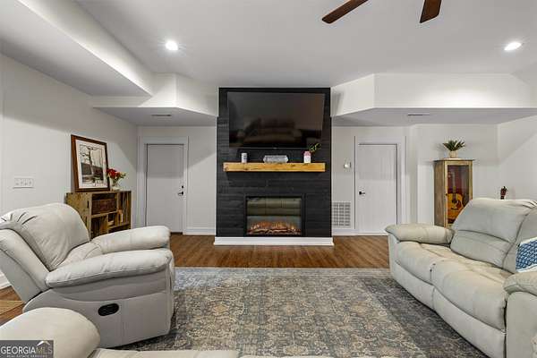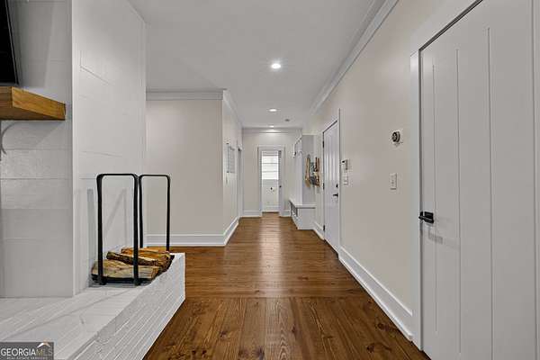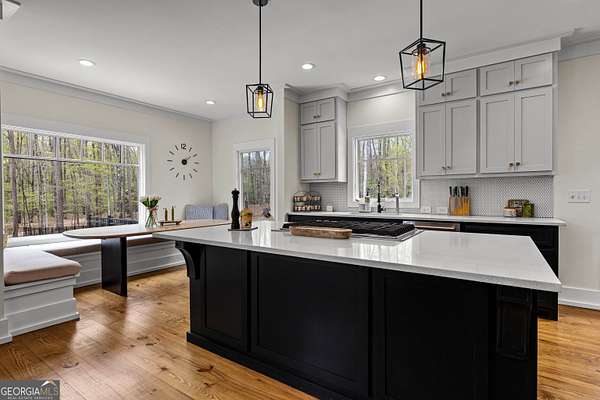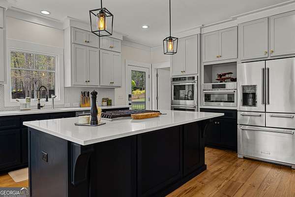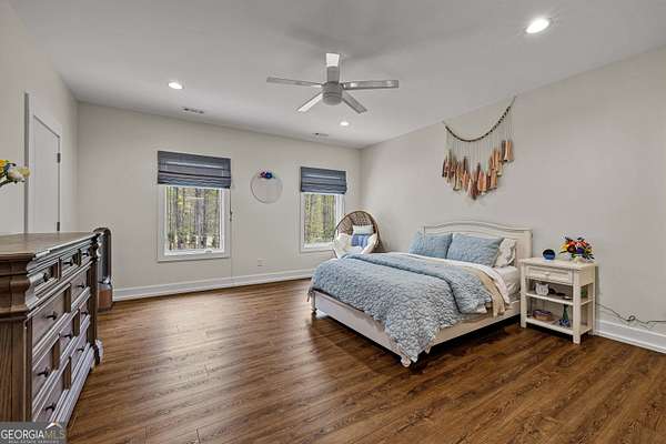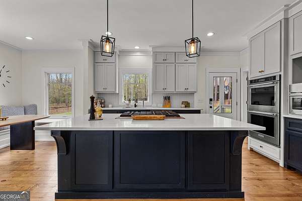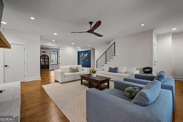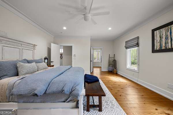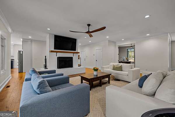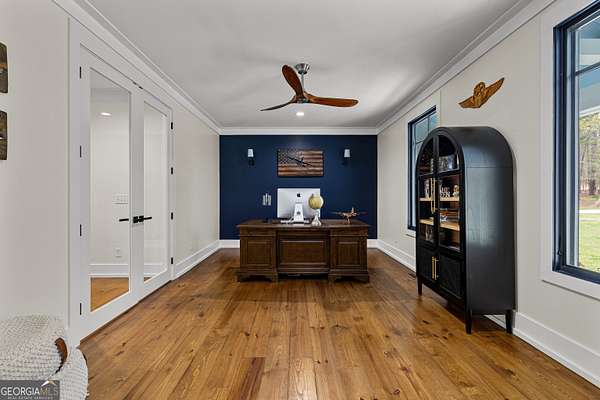 Set on 6.55 secluded acres in the coveted McIntosh school district, this extraordinary modern farmhouse estate is a rare offering, blending refined craftsmanship with resort style amenities and thoughtful upgrades throughout- beginning with a stunning main level kitchen appointed with all new KitchenAid appliances, a double oven, oversized island, a generous seating area, and an expansive walk in pantry, all flowing seamlessly into an elegant living room with a beautiful wood burning fireplace and a formal dining room that seats twelve. The luxurious main floor primary suite features three spacious walk-in closets with custom systems added in 2022. The primary bathroom features dual vanities, a tile bathroom, and private access to the newly refinished deck. The upper level offers four bedrooms, spacious walk in closets, and two modern bathrooms complete with tile finishes and towel warmers. There is also and a versatile flex space that could be used for a home office or storage. Upstairs you will also find a convenient laundry chute. The full finished basement has it's own private entrance-and was recently remodeled to include a full kitchen with island, oven, dishwasher, coffee bar, and pantry. This space also has a large living room with its own fireplace, two bedrooms, a full tiled bathroom, and a dedicated laundry area. The third garage is located downstairs. This space can be used as a garage or a flex space. The recently renovated basement is perfect for multigenerational living or a private in-law suite. Outdoor living is elevated by a heated pool that was installed in 2022, a recently added 500lb sand filter, and a RO/saltwater cell to make a ozone salt water filtered pool. This is complemented by a firepit, illuminated concrete pad with BBQ, updated landscaping, private wooded trail and a nine hole frisbee golf course. This is a home where you can make so many memories in your back yard! Don't forget to take a peek at the hidden tree house in the woods! Additional upgrades include new flooring upstairs and in the basement, refinished pine flooring on the main level, reverse osmosis systems in both kitchens, new lighting and fans, fresh new paint throughout and the finished basement. This home also offers dual fuel heating (ensuring year-round comfort), a climate controlled attic, aluminum clad casement windows, and a 50 year metal roof. Located in the exclusive Platinum Ridge community-an enclave of just 34 estate lots with custom homes and protective covenants-this exceptional property offers unmatched privacy and luxury. This is a rare opportunity to own an estate lot with golf cart accessibility to Peachtree City!!!!!
