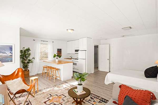Bright studio FOR RENT in Madison! Crisp white paint, butcher block counter tops, white appliances, and fresh white tile in bathroom. This unit is part of a larger multi unit home with separate private entrance, an enormous covered outdoor common space, shared washer/dryer, off street parking and a large mature yard. One car only. Additional $125/person flat monthly fee for yard, electric, gas, water, trash, sewer and wifi. Cats negotiable with additional monthly pet fee of $35/mo/pet. No dogs.