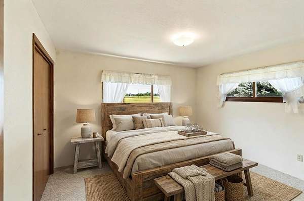 Gather up your animals & garden tools as there is plenty of space for your hobby farm on this fabulous 5 acre property conveniently located close to town yet has a country setting w/ mountain views off the back deck. The 3384 square foot home has 5 bedrooms, 3 1/2 baths & is set up with 2 separate living spaces upstairs & downstairs & includes 2 kitchens. This set-up is truly a must see & offers so many different opportunities; can be used as a large single family home, rent out the upper or lower level or rent out both levels for a double income. There is an attached 2 car garage plus a detached garage/wood working building & an oversized 40X92 potato storage building that could be used for boat storage, car storage or whatever you need it for. No CCR's & mixed zoning (a small portion is Scenic Corridor but most of it has no zoning). Additionally, a large part of the property is currently being leased & farmed by an outside party. Property, home & outbuildings being sold as is.