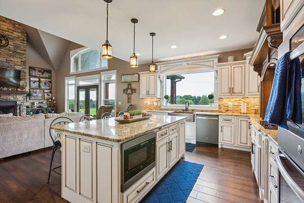 From the moment you step inside, you're greeted with elevated ceilings, rich rustic finishes, and an open, flowing design perfect for both everyday living and upscale entertaining. The gourmet-inspired spaces, refined craftsmanship, and warm fireplace create an atmosphere of elegance and comfort.