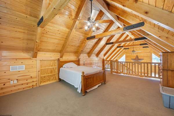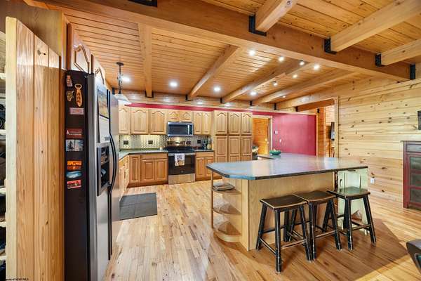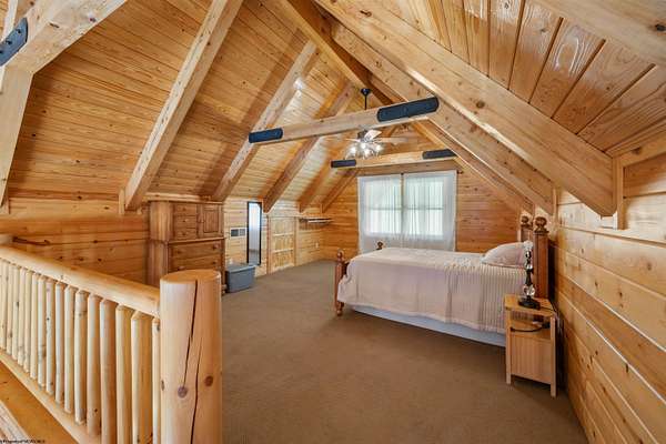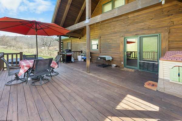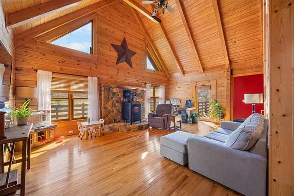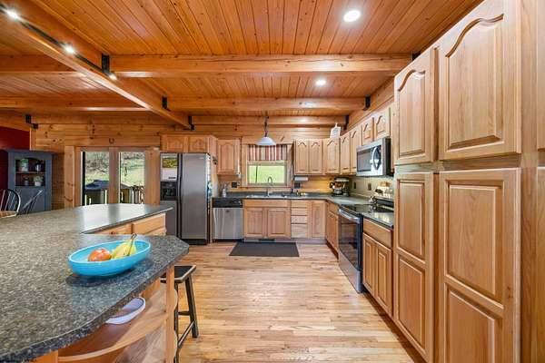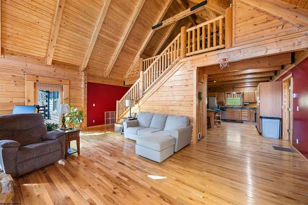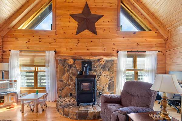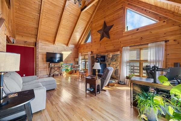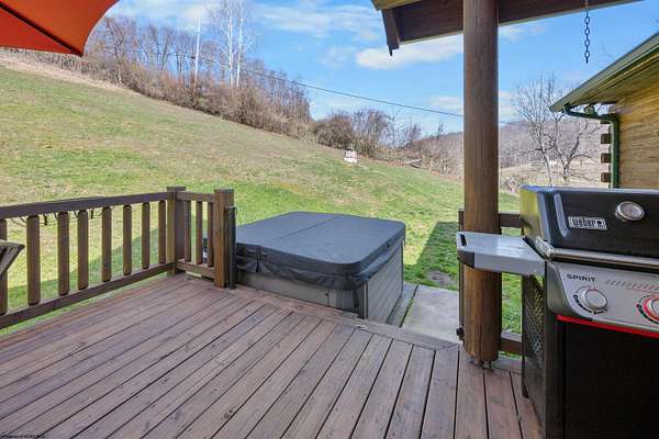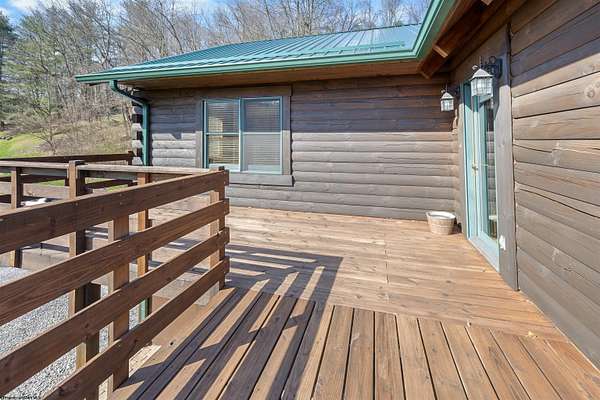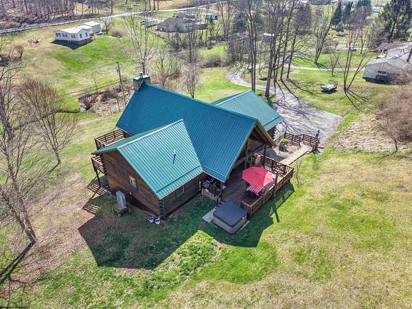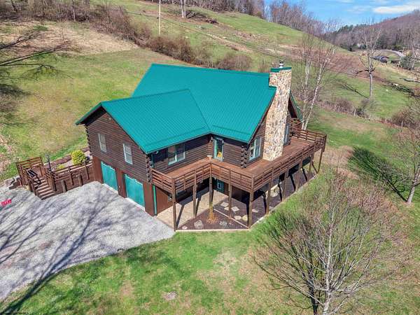 Discover the perfect blend of rustic charm and modern comfort in this stunning Appalachia log home, thoughtfully updated and beautifully maintained. Recent improvements include a newer metal roof, heat pump, and basement waterproofing, giving you peace of mind for years to come. Step inside to soaring vaulted ceilings and an open, spacious layout accented by gleaming hardwood floors and tile. The bright, airy kitchen features a dining area and a versatile bonus island—ideal for gatherings, cooking, or casual meals. Outdoor living shines here with expansive wraparound decks and a relaxing hot tub that convey with the property. Whether you’re entertaining or unwinding, the setting feels like your own private retreat. The main-level primary suite offers a generous step in closet and a well-appointed bath. Upstairs, a cozy loft provides the perfect spot for a game room, reading nook, or additional lounge space. A full basement delivers exceptional storage, an integral garage, and endless potential for workshop space or future finishing. The owner has also added an electric vehicle hookup, making this home as practical as it is picturesque. Nestled at the end of a quiet dead-end street.