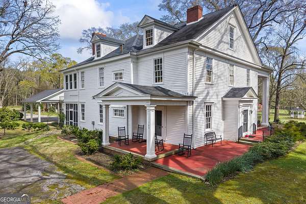 Step into timeless elegance with this stunning Southern beauty, a historic Southern Colonial estate in Lavonia, GA offering over 20 acres of usable land, multiple road frontages, and unmatched flexibility for residential, commercial, or investment use. Originally built in 1895, this home is rich in Southern charm, featuring grand columns, a stately front porch, and classic architectural details that create a true sense of arrival. The main residence offers 4 bedrooms, 3 bathrooms, and over 5,000 square feet, filled with character, spacious living areas, and the warmth only a historic home can provide. Office on Main floor could be used as a 5th bedroom. From relaxing on the expansive front porch to enjoying the peaceful surroundings, this property captures the essence of gracious Southern living. Surrounded by a beautiful mix of pasture, wooded acreage, and open land, the property offers both privacy and functionality. A standout feature is the front 9 acre tract currently being rezoned to B-2 commercial, providing road frontage on side street and Hartwell Road (Hwy 77)-ideal for retail, office, restaurant, event space or service-based business opportunities. The remaining acreage features additional road frontage and endless potential, perfect for a private estate, event venue, Airbnb investment, or future development. With the option to purchase sections separately, this property presents a rare chance to live, invest, and develop all in one location. Conveniently located just minutes from I-85, Lake Hartwell, downtown Lavonia, and a short drive to Hartwell, Toccoa, and Anderson, SC, you'll enjoy the perfect balance of Southern tranquility and accessibility. Whether you are searching for a legacy property, income-producing opportunity, or a one-of-a-kind Southern estate, 215 Hartwell Rd delivers it all. Rare Southern properties with this level of charm, acreage, and opportunity do not come available often-schedule your private showing today.