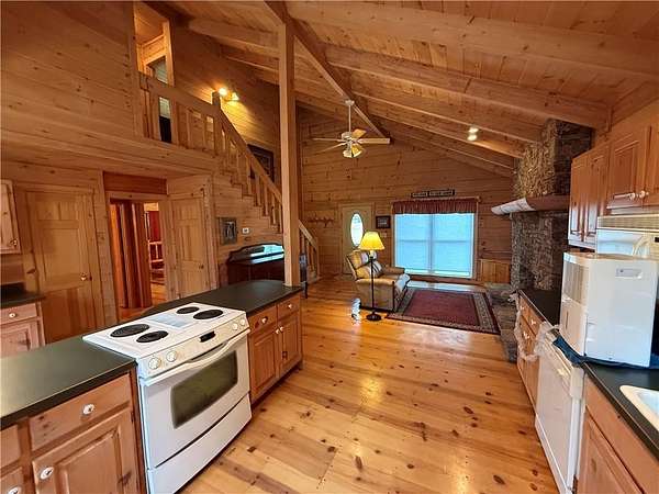 - Beamed Ceilings, High Ceilings 9 ft Main, Track Lighting, Vaulted Ceiling(s)