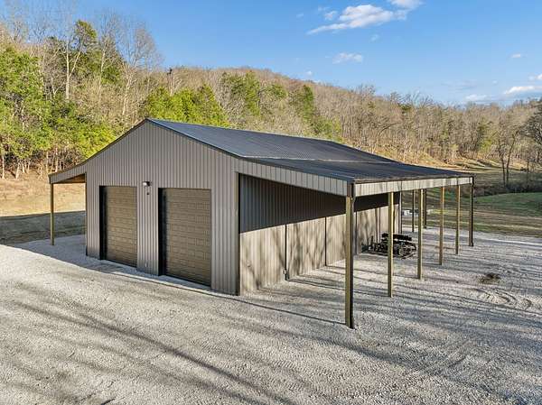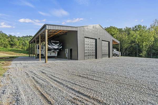Enter this stunning 306.95 acre farm with black ranch fencing and a gated entrance, setting the tone for the privacy and beauty that awaits.The owner has thoughtfully completed the major groundwork--site excavation, driveway, utilities, and septic approval--so you can move straight into building your dream home and farm. 4-bedroom septic permit w/ electric & water already in place at the build site. A 60x40 shop enhanced by lean-tos on each side, providing additional covered storage and workspace. Shop features a full bath, foam insulation, wood-plank interior walls, interior RV sewer, water & electric connection, wood burning stove and additional exterior RV hookup under the lean to for group camping adventures. Enjoy a custom hardscape patio complete w/outdoor kitchen and fire pit, perfect for entertaining. The hillside behind the shop provides a natural backdrop for private long-range shooting.