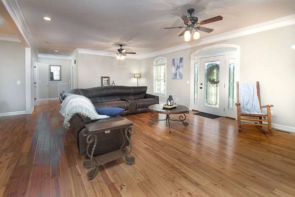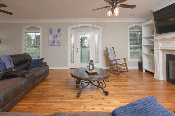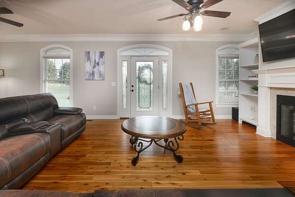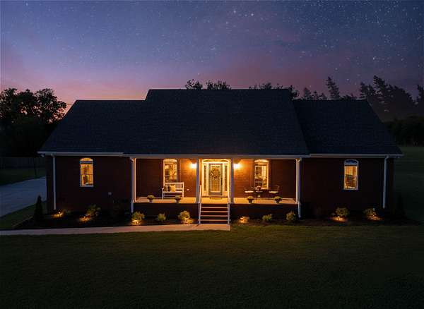 Beautifully maintained brick home situated on 5+/- peaceful acres! This stunning 3-bedroom, 4.5-bath home offers a perfect blend of country charm and modern upgrades. Step inside to find hardwood floors throughout, a spacious entertainment area/den, and private baths in each bedroom for added comfort and privacy. The home is equipped with a 3-car carport, a full security camera system, and a premium outdoor surround sound system--perfect for hosting gatherings. Enjoy quiet mornings on the covered front porch, surrounded by mature landscaping and open space for outdoor activities. This move-in ready property provides the best of both worlds: serene country living with thoughtful modern touches. Only minutes to Murfreesboro and more acreage is available if needed..