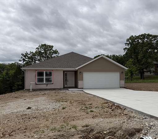 Construction is moving ahead full steam! Move in as early as May 1st!! Beautiful new construction single-level home situated on 2 private acres in a desirable upscale neighborhood less than 10 minutes from Branson. This 3-bedroom, 2-bath residence offers an open-concept design with a spacious living area, large kitchen island, and seamless flow ideal for everyday living and entertaining. The 2-car garage adds convenience, while the generous lot provides space for outdoor living, a future shop, or garden. Enjoy the perfect blend of peaceful country living with quick access to Branson's shopping, dining, and attractions.