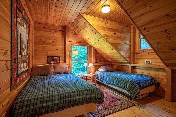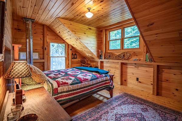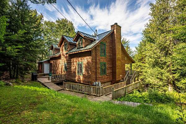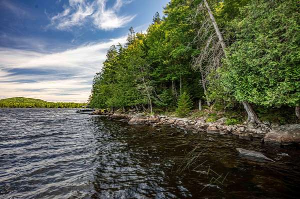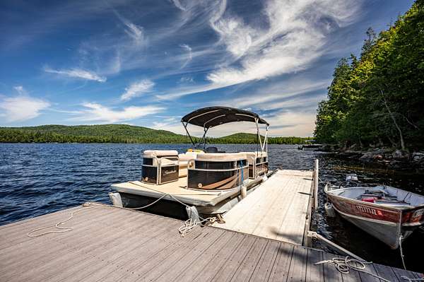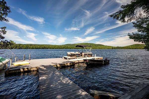 ''Big Moose Lake Retreat'' - Seasonal Boat Access Only Adirondack Getaway - Escape to this 10-acre property with 200 feet of spectacular waterfront. A large dock provides plenty of space for boating, swimming and soaking up the view and catching the sunsets. Perched high above the water, the home is framed by beautiful pines a full length screened porch conveys unmatched privacy. An additional screened in area is a nice bonus for family life or appropriate as a sleeping porch. Inside the craftmanship shines in this post and beam home. Beautiful woodwork, hardwood floors throughout and a warm Adirondack style that is welcoming greet you. Downstairs the open design with modern kitchen features custom cherry cabinets, a breakfast bar, and an ample dining area which opens to a spacious living area with a beautiful stone fireplace for family and friends to gather . An additional room downstairs with a wood stove is a quiet retreat for reading or quiet relaxation. There is a full bath with laundry facilities and an ultraviolet water system for water that is pumped from the lake and an on demand water heater. Upstairs, a gorgeous staircase leads to four comfortable bedrooms each with ample storage space. A hallmark of post-and-beam design are dormers in each bedroom which bring in natural light and create cozy alcoves for a desk or comfy chair. The second full bath upstairs blends modern fixtures with Adirondack charm. Tucked in the back of the house is a modest size deck which is a nice spot for morning coffee or evening relaxation. Also in the rear is a cute bunkhouse which provides a bonus sleeping space or a place to exercise your creativity. Whether your looking for a private getaway or a home base for lakeside adventures, this turn key property has it all - land, waterfront, and charm is an opportunity to make lasting memories. HOA which includes dock space and parking makes accessibility convenient.
