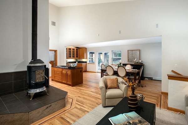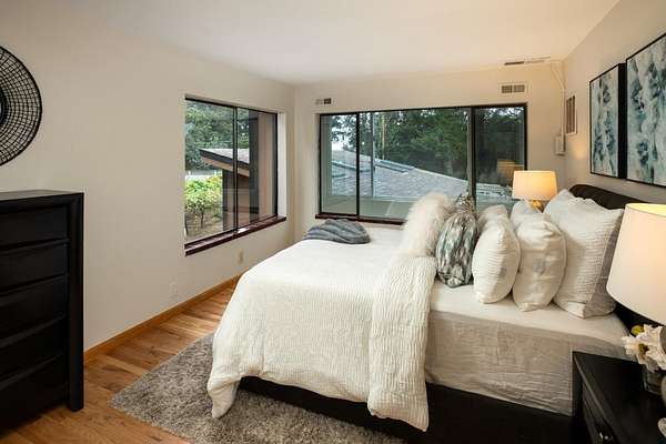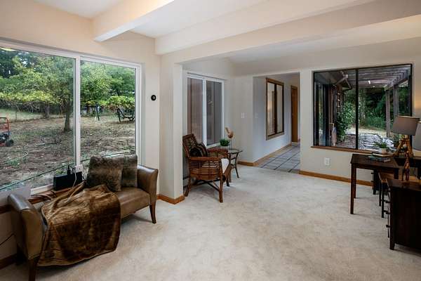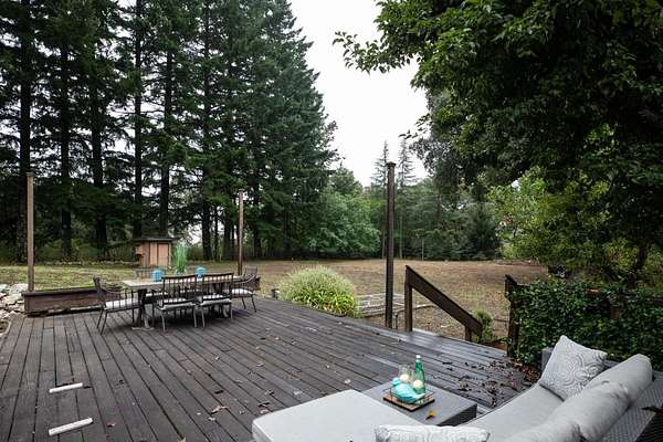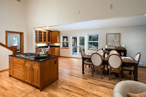 Secluded contemporary split-level in the Los Gatos Mountains, minutes from downtown, on 2.8 park-like acres along a private road with garden space, chicken coop, sand volleyball court, and equestrian possibilities within fully fenced grounds and an electric gate. The 4-bedroom, 4-bath main home plus 736 sq ft ADU with full kitchen & loft offers versatile living, abundant storage, & bonus spaces. Enter into the formal living room with a vaulted ceiling, fireplace, & built-in cabinetry. A few steps down, the lower-level primary suite features a large bedroom, sitting area with built-in window seats, flex space, wood-burning stove, & spa-inspired ensuite. On the main floor, the remodeled chefs kitchen with granite countertops & large island opens to a breakfast nook & open-concept family room with vaulted ceiling & wood-burning stove, plus a separate dining room. Three additional bedrooms include an upper-level guest suite with full bath, two main-floor bedrooms & full baths, and a dedicated office. Highlights include a loft, mudroom with laundry, oversized two-car garage with workshop, partial basement with storage or wine cellar potential, & a 24KW Generac generator. Relaxed mountain living just 5 minutes to Hwy 17, 15 minutes to downtown Los Gatos, & easy Silicon Valley access.