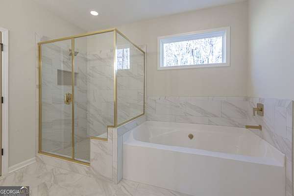 - Double Vanity, Entrance Foyer, High Ceilings, Master On Main Level, Separate Shower, Tile Bath, Tray Ceiling(s), Walk-In Closet(s)