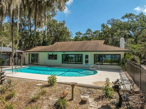 Set against a backdrop of breathtaking bay views and spectacular sunsets, this charming 3-bedroom, 2-bath house is the ultimate waterfront retreat. The home's single-level design offers a seamless, open-concept flow, with large windows flooding the living spaces with natural light and showcasing the serene coastal landscape. The main living area opens to a spacious sunroom, creating a perfect indoor-outdoor entertaining space that overlooks the heated swimming pool. Surrounded by a generous deck, the pool provides a refreshing oasis for relaxation and family fun. For boating enthusiasts, the property features a private dock equipped with a covered boat lift, offering immediate and easy access to the bay. The dedicated covered boat shed and workshop provide secure storage and a versatile space for projects, fishing gear, and equipment. After a day on the water, the home offers a private sanctuary to unwind. Inside, the home includes: A primary suite with a private en-suite bath and picturesque water views. Two additional cozy bedrooms and a full guest bathroom. An updated kitchen with modern appliances and ample cabinet space. As day turns to dusk, the magic truly begins. The spacious waterfront patio offers a front-row seat to spectacular, uninterrupted sunsets that paint the sky with vibrant colors, creating a nightly masterpiece. This exceptional home combines the tranquility of bayfront living with all the amenities needed for a coastal lifestyle. As a added bonus, there is a mother-in-law suite with its own full bath.