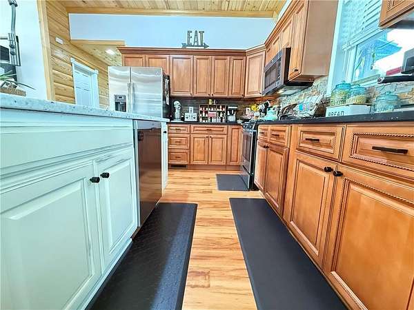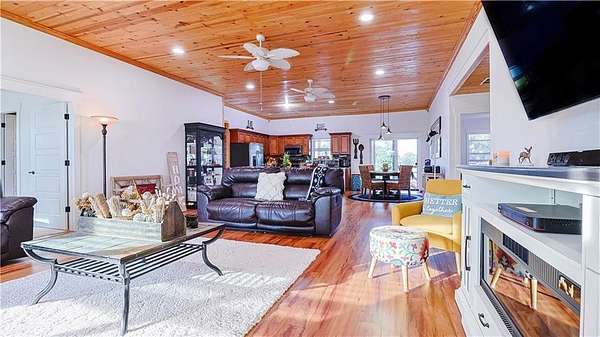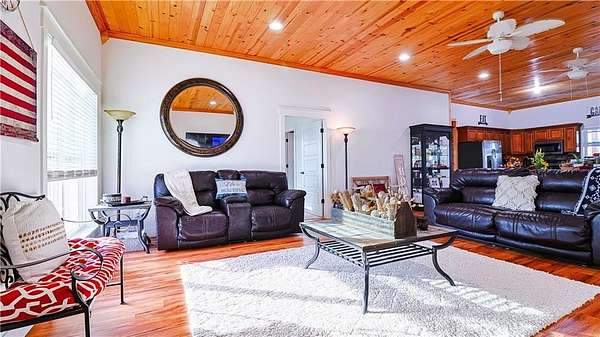 HIGHLIGHTS: 5+ACRES LAND + 1+ ACRE STOCKED POND, 2400 SQ FT ONE LEVEL HOME,40X50 MECHANICS GARAGE WITH 3 PHASE POWER, ITS OWN 220V SERVICE,FULLY INSULATED AND EQUIPPED WITH PIPING UNDERNEATH TO INSTALL RADIANT HEATING! 24X12 LEAN-TO FOR LIVESTOCK! THIS IS A PERFECT SETUP FOR AN AT HOME AUTO MECHANIC REPAIR SHOP OR COULD EASILY BE FINISHED OFF AS MOTHER IN LAW OR ADDITIONAL FAMILY QUARTERS! TRUE ONE LEVEL LIVING! INCREDIBLY LOW TAXES! ONE OF THE LEAST STRICT AREAS ON RESTRICTIONS FOR LAND USE!CLOSE TO THE CITY BUT PRIVATE ENOUGH TO RELAX AND UNWIND EVERYDAY! Nestled back in between hwy 50 and I-70 just 2 miles off of hwy 13, sits the kind of place you've been looking for! Peaceful still setting with incredible Sunrises/Sunsets! Like a secret, secluded getaway. Your new home has been updated with modern finishes throughout to look absolutely stunning. Open concept floorplan with 10 ft wood ceilings. Kitchen sits center-stage with a huge island bar to fit all the food you need and all the people you want to invite. Huge master bedroom with walk-in closet and huge master bath! Home has 2x6 outer wall studs with top of the line insulation. Attic has blown in R-36 and the logs add another R-5 rating to the outside. The possibilities are truly endless, you have to come check this one out! Walk in 4 1/2 ft tall crawl space for storage. 3 beds, 2 full large baths, master suite right off of living room, walk in closet, walk in pantry, laundry room, 2400 square feet all on one level, 2 outbuildings and a fully stocked pond with fish just waiting to welcome you! All Pella windows throughout, new doors,new trim,new paint,freshly stained full wrap around deck that walks out over the pond. Truly one of a kind! Come see what I mean!