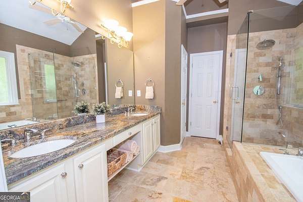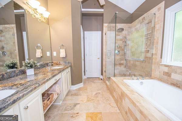 Double Vanity, High Ceilings, Master On Main Level, Separate Shower, Soaking Tub, Split Bedroom Plan, Tile Bath, Walk-In Closet(s)