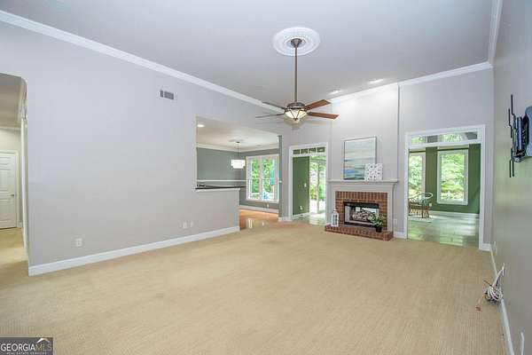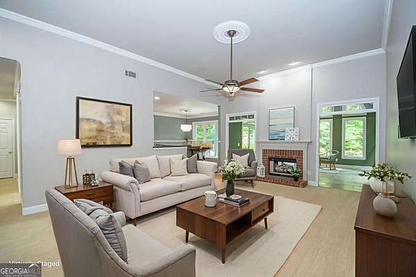 OPEN HOUSE: SAT MAY 2, 12-3 PM! Stunning Brick Ranch Home on 15.65 Private Acres in Central Fayette County. Discover the perfect blend of comfort, elegance, and privacy in this beautifully updated 3-Bedroom Ranch Home with a Bonus Room, Office/Den, and Sunroom-all nestled on 15 serene acres leading to Whitewater Creek in sought-after Pine Lake Estates. Over $100,000 in Upgrades including Granite Kitchen, Master Bathroom, Travertine Floors in Sunroom and ALL Bathrooms, new Garage Door, Lighting, extensive Hardscape, HVAC and More! This 3-sides brick home welcomes you with a vaulted foyer that opens into a spacious great room featuring a dramatic two-sided gas-log fireplace. From the foyer the adjoining Dining Room and private Office/Den provide both functionality and charm. The Great room flows seamlessly into a beautifully renovated kitchen showcasing granite countertops, double ovens, a breakfast bar, and a bright breakfast area. From there, step into the sunroom-complete with travertine flooring-and out onto an expansive paver patio with extensive hardscaping, perfect for relaxing or entertaining while enjoying the peaceful natural surroundings. The thoughtfully designed split-bedroom layout offers two secondary bedrooms connected by a Jack-and-Jill bath with glass door. The oversized Primary Suite on the main level features a vaulted ceiling, cozy fireplace, and a SPA Bath with a soaking tub, walk-in shower, and dual closets. Additional main-level highlights include a powder room and a charming laundry room with brick flooring. Upstairs, a quiet bonus room provides flexible space for a home office, studio, exercise room or guest retreat. The spacious two-car garage includes a new door and built-in workbench. Outside, explore your private 15 acres with walking paths, abundant wildlife, and a garden shed-ideal for those who appreciate nature and tranquility. Located in the prestigious Pine Lake Estates community, this property offers a peaceful retreat just minutes from downtown Fayetteville, Piedmont Fayette Hospital, and Trilith Studios.