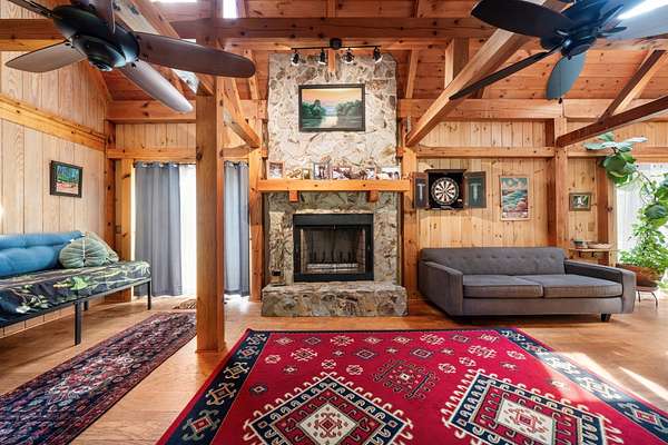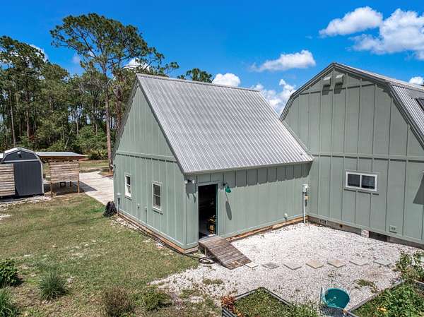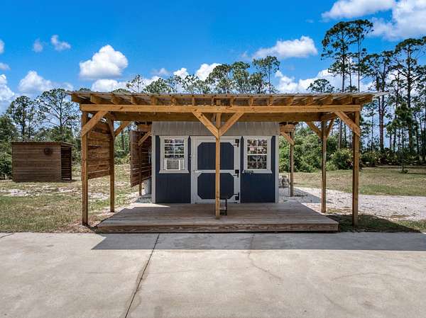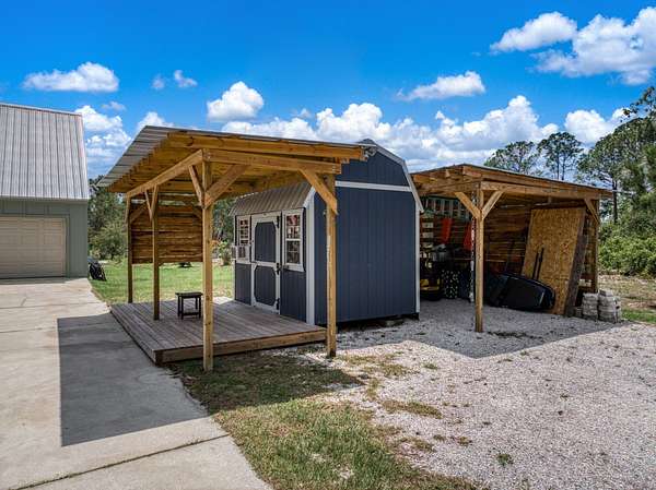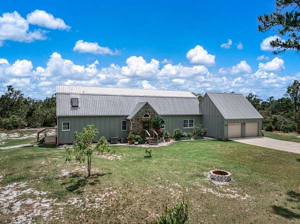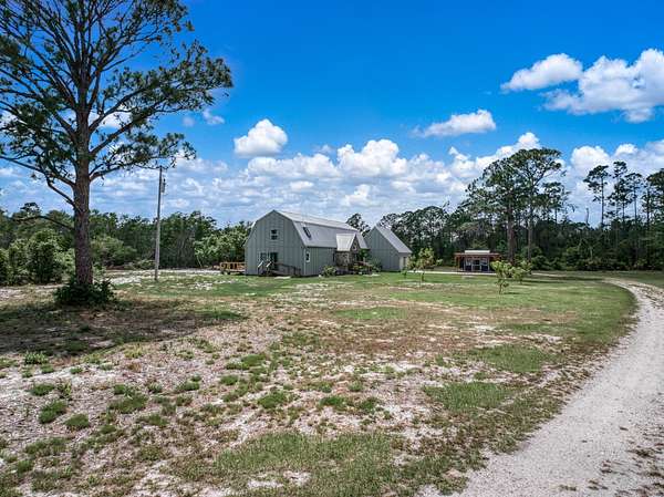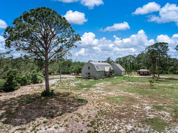 A truly one of a kind authentic timberframe farmhouse privately situated on 10 fully fenced acres of beautiful, natural Florida landscape with a large cleared lawn and garden area around the house, new huge deck with a screened in back porch, and plenty of room to expand. With Agricultural zoning and nicely nestled in an area of larger land parcels, this well cared for property is centrally located, quiet and rural, but just minutes away from both the adorable town of Sebring and Lake Placid. Inside the spacious home you'll find warm wood walls and soaring post and beam ceilings. An open concept kitchen and living area looks up to the large light filled loft, perfect for entertaining. There is ample storage space with big closets, a two car attached garage, and a 2024 wired, insulated and finished 8x12 shed with shade awnings and porch. The completely usable acreage boasts lovely walking trails through out and abundant wildlife. Recent upgrades include new well and filtration system in 2020, all new HVAC units in 2023, new Hardie board siding with fresh paint completed in January 2025, new garage doors, sliding glass doors, large capacity hot water heater, bamboo flooring, new bath fixtures and tile and brand new Speed Queen washer and dryer set.