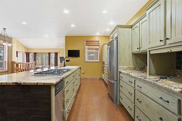 Experience the perfect blend of luxury, comfort, and Montana charm in this stunning custom built home designed for both everyday living and elevated entertaining. When you walk through the front door, you're welcomed into a beautiful sunken living room filled with natural light and centered around a cozy fireplace. Just off the living room is a spacious custom kitchen featuring a show stopping island perfect for gathering, hosting, and creating unforgettable moments. The main level primary suite offers a private retreat with comfort and convenience. With 4 bedrooms and 3.5 bathrooms, there is space for everyone! The attached guest quarters, features its own custom kitchen, private entrance, and attached garage, providing exceptional flexibility and potential. Step outside and enjoy true Montana living with outdoor decks, privacy, mature trees, and beautifully landscaped grounds. The wraparound driveway is truly stunning, with ample space for large vehicles, trailers, and trucks. This is more than a home, it's a lifestyle. A rare opportunity to own a luxury retreat where craftsmanship, space, and the beauty of Montana come together seamlessly. Don't miss your chance to make it yours.