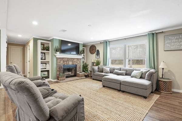 Modern Elegance meets Southern Comfort in this pristine 2022 doublewide residence nestled on an expansive 2.33-acres. Boasting a spacious 3br, 2ba layout with vinyl flooring throughout, this home exudes contemporary charm and comfort at every turn. Step inside to discover a gourmet kitchen featuring a massive island perfect for culinary creations, complemented by a cozy fireplace that sets the tone for intimate gatherings. The luxurious master suite beckons with its walk-in shower and indulgent soaker tub, offering a private sanctuary of relaxation. Convenience is key with the utility room equipped with a sink and ample storage while the walk-in closets provide organization made easy. Amenities include community swimming pool, tennis, pickleball, and basketball courts. Indulge in fine dining at Rayburn Resort and Country Club or tee off at the prestigious 18-hole golf course. Embrace lakeside living with community water access just moments away!