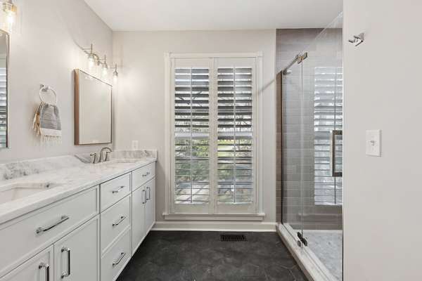 Beautifully renovated West Meade ranch on a quiet cul-du-sac sitting nestled in the hillside! This Four bedroom home features an open floor plan with a gas fireplace and newly refinished hardwood floors throughout. This kitchen has custom cabinets with new quartz countertops and stainless steel GE Monogram appliances including gas cooktop and built in oven & microwave. The large master suite has new custom tile in bathroom and a large walk in closet. New bathroom vanities and tile throughout. Relax on the private patio with outdoor fireplace -perfect for entertaining. And a brand new roof!