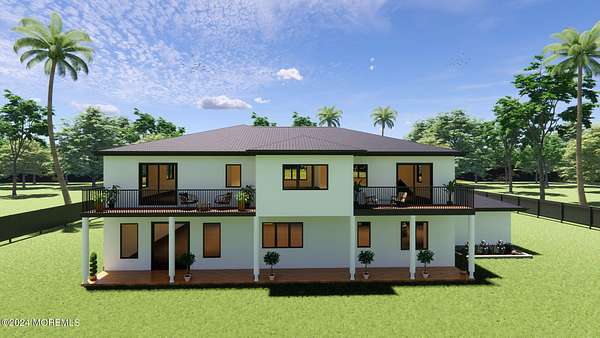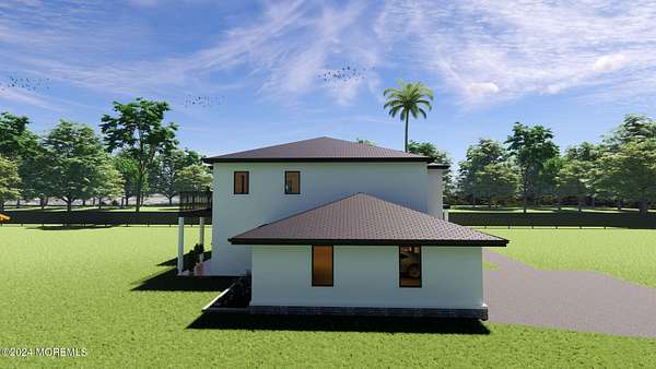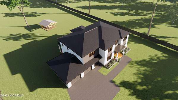 Introducing a breathtaking new construction, boasting approximately 4,500 sq. ft. of living space on nearly 2 acres of pristine property, complete with a convenient turnaround driveway. This custom-built, 5-bedroom, 4.5-bath colonial home exudes elegance and sophistication. As you enter through the grand two-story foyer, you are greeted by a stunning Cinderella staircase that serves as the centerpiece of the home. The formal living and dining rooms offer ample space for entertaining and family gatherings. The gourmet kitchen is a chef's dream, featuring a large center island, custom cabinetry, Quartz countertops, and a stylish custom backsplash. Outfitted with top-of-the-line stainless steel GE Cafe appliances, including a wall oven and cooktop, this kitchen also boasts a true Butler's pantry. The kitchen seamlessly flows into a spacious great room, complete with a sleek linear fireplace. The first floor includes a guest bedroom with an en-suite full bath, as well as an additional powder room for convenience. Upstairs, the primary bedroom retreat offers a serene sanctuary, featuring a dressing room, a walk-in closet, and a spa-like bath with a freestanding tub, a frameless shower door, and a designer vanity. The second floor also includes a princess suite, two additional spacious bedrooms with a shared Jack and Jill bath, and a versatile study or playroom. This home is designed for modern living, with laundry rooms conveniently located on both the first and second levels. The 10-foot ceilings on the first floor and 9-foot ceilings on the second floor create an open and airy ambiance. Choose between porcelain tile or hardwood flooring throughout the entire home. Enjoy outdoor living with a Trex-like deck at the back of the house and two balconies offering picturesque views. The exterior of the home features a striking stucco and stone elevation with designer black windows. Additional highlights include 100 recessed lights, a 3-zone AC system, and a durable 50-year dimensional roof. There is still time to customize this exceptional home to your exact specifications. Ideally located near shopping and transportation, this property offers both convenience and luxury. Don't miss the opportunity to make this stunning new construction your dream home. Contact us today for more information and to schedule a private showing.