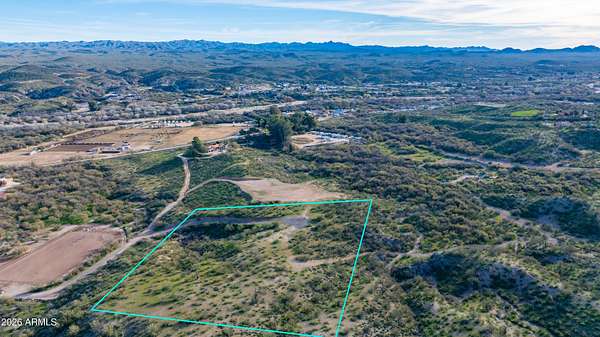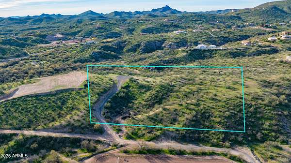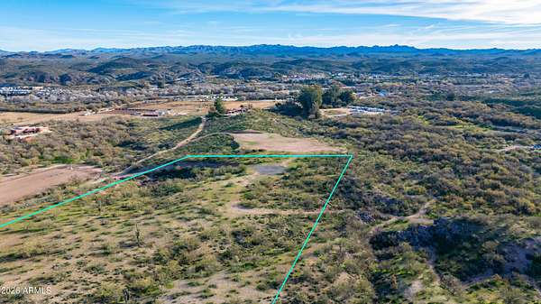 This 4.2 acre property sits atop a serene stunning green desert landscape hillside providing sweeping views of the Simpson Ranch and stunning lights of Wickenburg. The elevated location gives the property a sense of privacy and tranquility while the surrounding desert vistas and vibrant greenery create a beautiful, natural retreat perfect for those seeking peace and quiet while being 5 minutes from town. This property offers a perfect flat area to build your dream home and horse barn with so many riding trails and washes to ride out in the gorgeous desert. Property has a shared well and paved entrance.