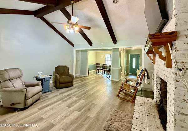 Beautiful 3 bedroom,2- bath home situated on 9 full acres, featuring a highly desirable split bedroom plan for added privacy. The kitchen is well appointed with granite countertops and flows easily into the main gathering area. The gathering room showcases stunning beamed ceilings that create warmth and character. The formal dining room offers an elegant space for entertaining. Step outside to enjoy a two tiered deck overlooking the peaceful property, not included in square footage is a basement that is unfinished, great for storage, workout room, or an office if finished out Outside you will find a shed with a place to park equipment, Just beyond the shed is a large fishing lake filled with brim and bass. The owner has built a neat bridge that leads to the back of the property, Perfect for outdoor enthusiast, hobbyist or walking . Close to Central Hinds Academy, the Natchez Trace, Hinds Community College and last but not least, the quaint ton of Raymond. Call you favorite agent today