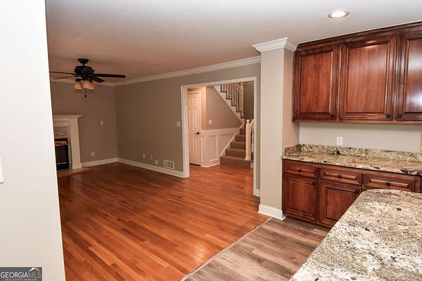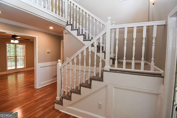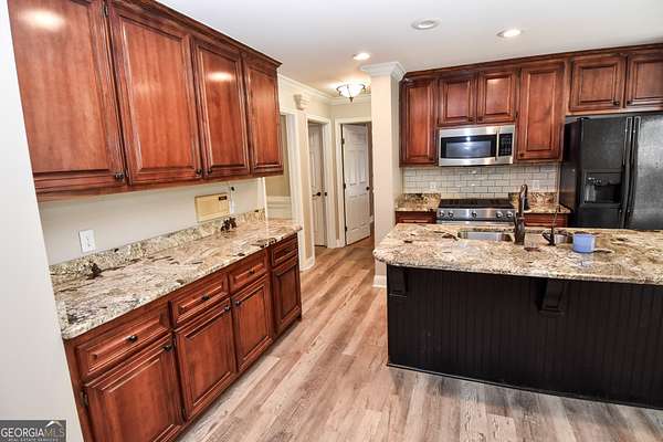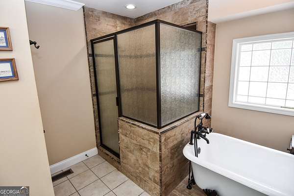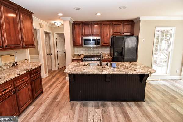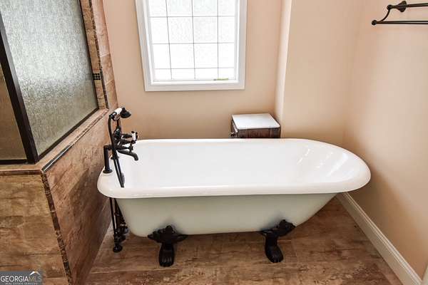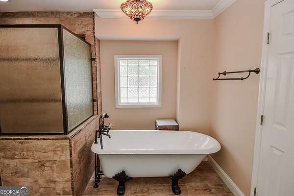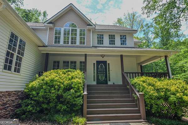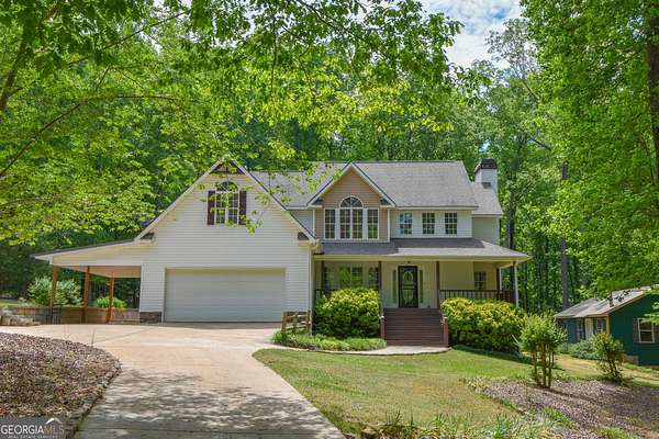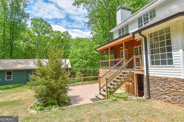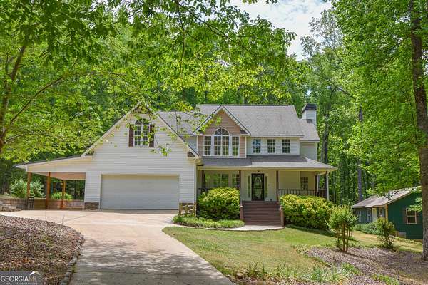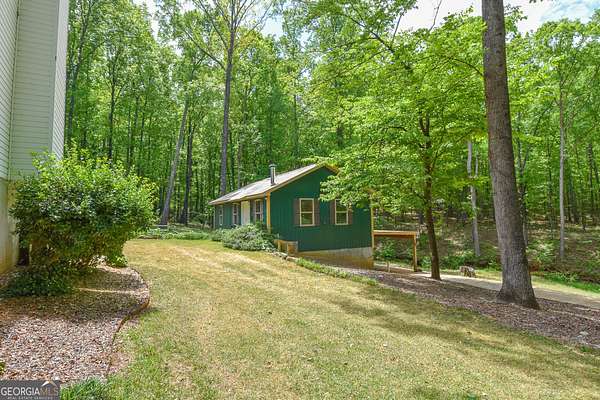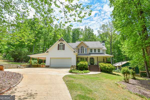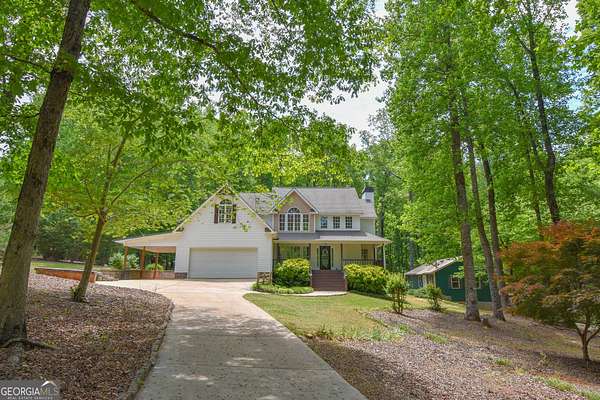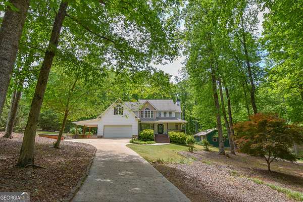 Nestled on a quiet private cul-de-sac and bordered by a serene spring-fed creek, this beautifully maintained custom-built home offers the perfect blend of comfort, quality, and modern updates. Featuring 4 bedrooms, 3.5 baths, and a spacious bonus room that could easily serve as a 5th bedroom, this home is designed with both functionality and style in mind. The updated kitchen is a chef's dream, complete with high-end KitchenAid appliances, a 5-burner gas cooktop, granite countertops, a premium Moen faucet, and a brand-new dishwasher. The luxurious primary suite boasts a custom tile shower with built-in seating and shelving, a classic footed cast iron soaking tub, dual vanities with upgraded Moen fixtures, and a comfort-height toilet. A hot water circulation system ensures instant hot water throughout the home. Elegant finishes include 3/4" hardwood flooring in the foyer, family room, and primary bedroom, detailed captain's paneling in the dining room, and extensive crown molding and oversized baseboards throughout the main level. Additional features include gas logs, a security system, and high-speed fiber optic internet-ideal for a home office. Step outside to enjoy a covered back porch with grilling area, a custom concrete patio, and a professionally landscaped, sodded yard with rock edging. Relax by the fire pit with built-in seating or unwind by the peaceful creek. A standout feature is the impressive 24'x40' workshop with a 24'x24' basement and covered shed roofs, accessible via a separate driveway-perfectly suited for conversion into a mother-in-law suite. Recent updates include fresh interior paint, upgraded ceiling fans, LED recessed lighting, modern fixtures, enhanced front and rear security/storm doors, and a newly replaced driveway with added carport. This home has been thoughtfully updated to meet today's standards and offers exceptional space, privacy, and versatility-truly a wonderful place to call home.
