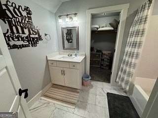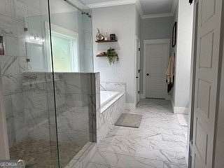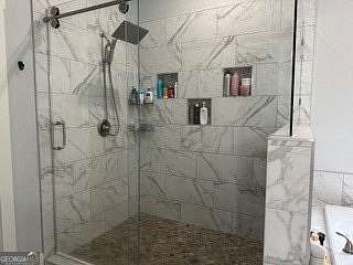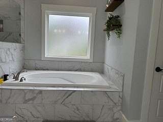 - Double Vanity, High Ceilings, Master On Main Level, Separate Shower, Soaking Tub, Tile Bath, Walk-In Closet(s)