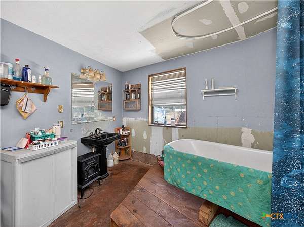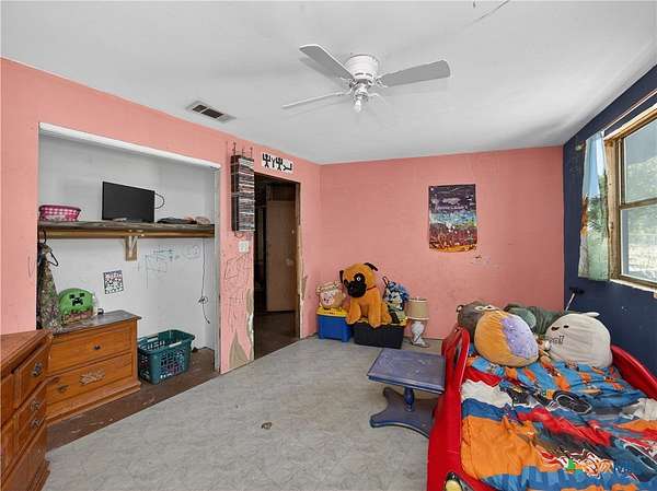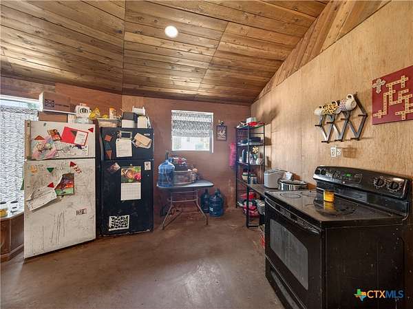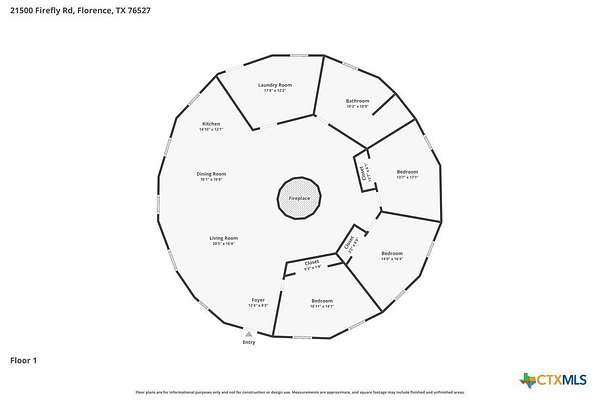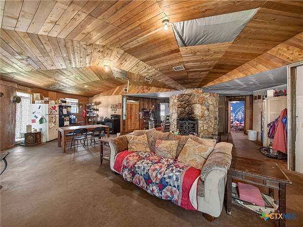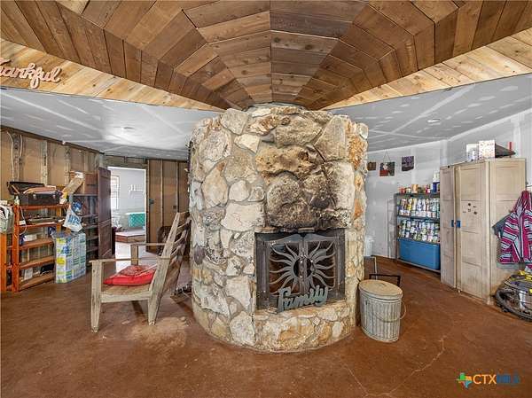 This 3-bedroom, 1-bathroom home in Florence offers a rare architectural layout on a private 4.73-acre lot. The "round house" design features a faceted exterior and an interior centered around a massive 360-degree natural stone fireplace. The open-concept living, dining, and kitchen areas wrap around this central hearth, creating a large, interconnected space. The interior is defined by vaulted ceilings finished with light wood planking. These ceilings angle upward from the perimeter walls to a central peak, mirroring the home's unique polygonal footprint. The geometric woodwork and massive stone masonry provide a high-end, custom feel that serves as a solid foundation for your final renovations. The home includes three spacious bedrooms and an oversized bathroom. A large laundry and utility room provides extra storage and workspace. The home uses a private storage tank for water, which is filled regularly. There is no municipal water connection. The major structural character is already in place, offering a head start for a buyer looking to finish a one-of-a-kind residence. Outside, the property includes a detached carport, providing covered parking and additional utility space away from the main structure. The 4.73-acre property offers a rural retreat with plenty of room for animals, gardening, or workshop space. If you are looking for a home with significant equity potential and a layout you won't find anywhere else, this property is a must-see.