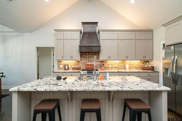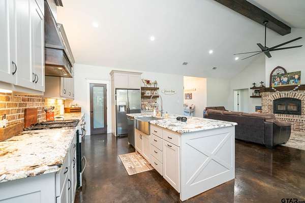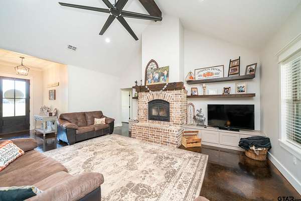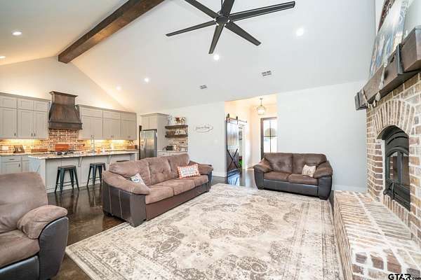 Built in 2021, this beautiful custom built 2,409 sq ft single-story residence sits on 5.75 open and fenced acres, offering the perfect blend of country living and modern comfort--just minutes from town and within walking distance to the lake. Step inside to an inviting open-concept layout that seamlessly connects the kitchen, living, and dining areas--ideal for entertaining and everyday living. The kitchen boasts stainless steel appliances, a large island, and a spacious walk-in pantry, perfect for any home chef. The living room features vaulted ceilings, a brick wood burning fireplace, and built-in storage. This flexible floor plan includes 4 bedrooms (or 3 bedrooms plus a game/media room) and 2.5 bathrooms, with a split master suite for added privacy. You'll also find a dedicated office, a mud/laundry room, and plenty of thoughtful design touches throughout. Enjoy outdoor living year-round on the covered patio, complete with a hot tub that conveys. The property features a gated entrance and a long asphalt millings driveway, an attached 2-car carport, and a 24x8 storage room--giving you all the space you need for your toys and tools. With city water, sewer, trash, and co-op electric and internet, you get all the conveniences of in-town living in a peaceful, private setting. There's plenty of room to store ATVs, boats, and trailers--and still space left to build the shop you've been dreaming of! Don't miss this rare opportunity to enjoy modern country living with unbeatable access to town and lake life.