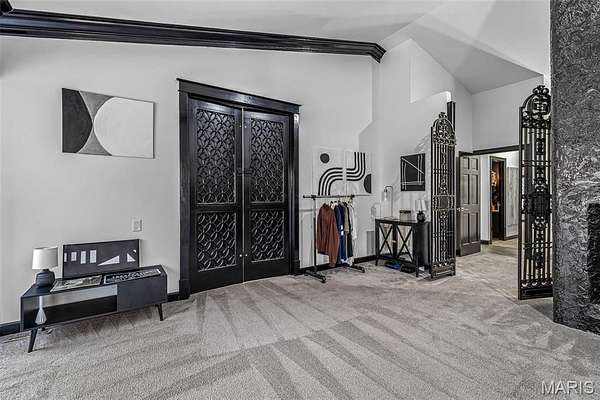 - Beamed Ceilings, Bookcases, Breakfast Room, Cathedral Ceiling(s), Coffered Ceiling(s), Crown Molding, Custom Cabinetry, Double Vanity, Eat-In Kitchen, Entrance Foyer, High Ceilings, Kitchen Island, Lever Faucets, Recessed Lighting, Separate Dining, Separate Shower, Solid Surface Countertop(s), Track Lighting, Tub, Walk-In Closet(s), Walk-In Pantry, Wet Bar