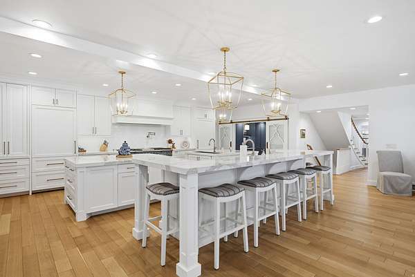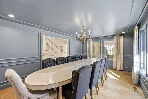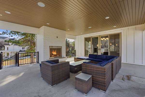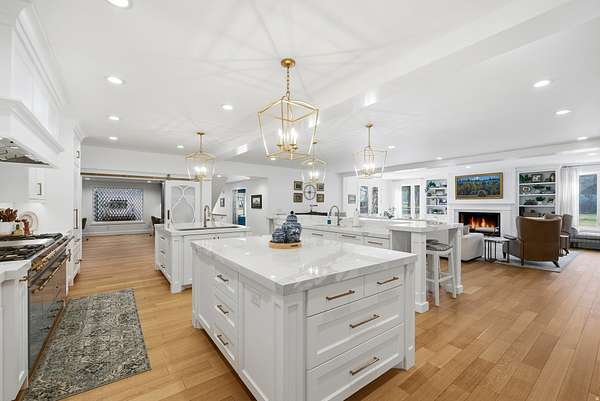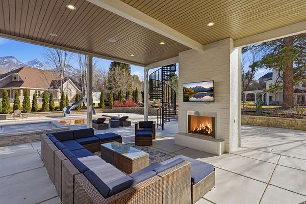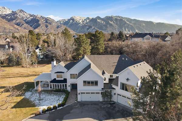 This masterfully remodeled modern farmhouse offers the pinnacle of luxury living on a secluded 2.50-acre lot. Blending sophisticated design with functional homestead charm, the estate features a private drive and unmatched views of the Wasatch mountains. Every inch of this 12,086-square-foot masterpiece has been curated for the discerning buyer, beginning with a main residence where grandeur meets comfort. The house is thoughtfully designed with six spacious bedrooms and six elegant bathrooms, ensuring every occupant has a private retreat. At the heart of the home lies a chef's dream kitchen, equipped with top-of-the-line appliances, two massive islands, and a large butler's pantry. The adjacent family room is flooded with natural light through floor-to-ceiling windows and features a semi-formal dining area alongside one of the home's many elegant fireplaces. The main level also includes essential spaces such as a formal dining room for hosting, a private home office, a dedicated craft room or second office, and a massive mudroom with custom lockers. Upstairs, the primary suite serves as a true sanctuary with a spa-like bathroom, expansive walk-in closets, and a private covered deck complete with its own fireplace and TV. This upper level also serves as an entertainment hub, featuring large secondary bedrooms with private decks and a dedicated theater room equipped with a full kitchen. The backyard is an unparalleled resort-style oasis designed for entertaining. The aquatic features include an in-ground pool with a slide and a relaxing hot tub, complemented by dedicated changing rooms, poolside bathrooms, and a full kitchen. For outdoor dining, the grounds feature multiple built-in BBQ stations and a private pergola, all surrounded by mature trees for total seclusion and stunning mountain views. The estate further includes a detached ADU that functions as a "home within a home," perfect for guests or a high-end executive office. It features a bedroom/office, bathroom, kitchenette, and a covered deck overlooking the pool. Hobbyists will appreciate the four-car attached garage and a detached two-car garage with extra depth and built-in cabinets. Hidden beneath the suspended garage is a full-scale gym or dance studio with its own laundry and bathroom. For those with an adventurous spirit, the property provides massive, covered RV parking and multiple storage rooms. Perfectly positioned for the Utah lifestyle, this legacy estate is centrally located near top-tier schools and shopping yet remains only minutes away from the world-class skiing and hiking of Big and Little Cottonwood Canyons.