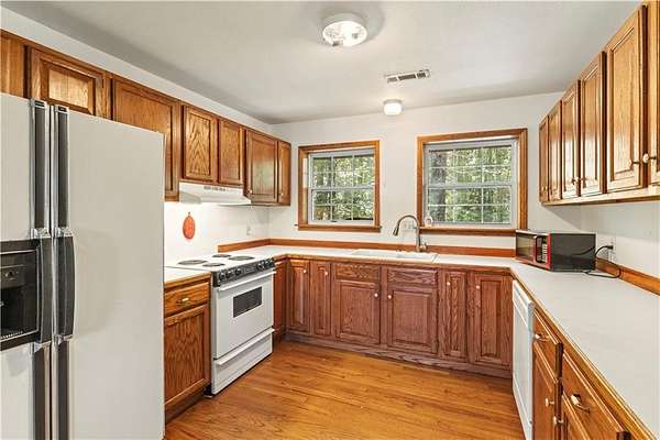- Ceiling Fans, Eat-in-Kitchen, Ice Maker Connection, Smoke Detector, Walk-In Closets