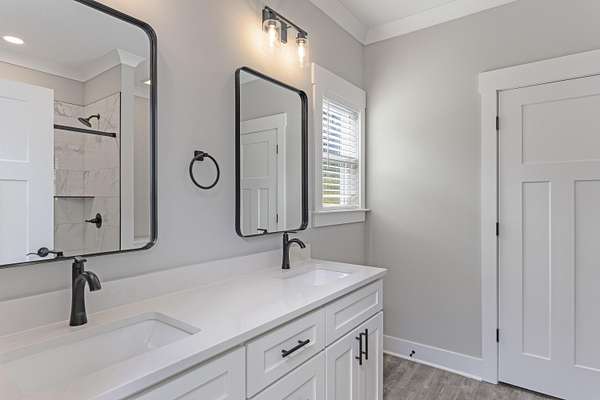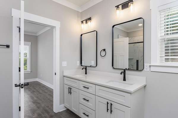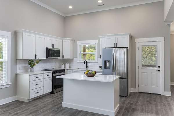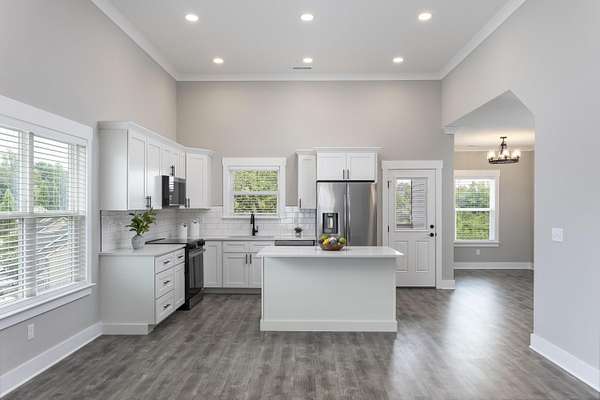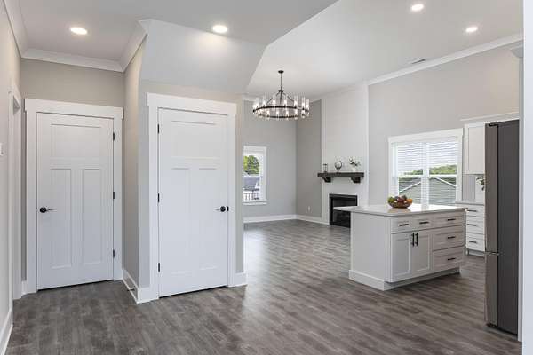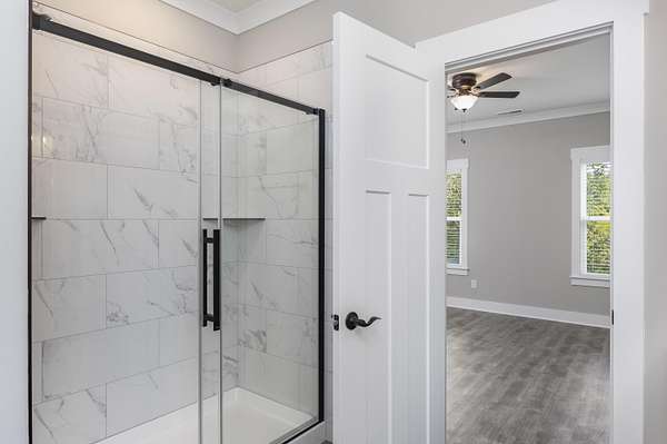- Bathroom Mirror(s), Breakfast Bar, Ceiling Fan(s), Crown Molding, Double Closets, Double Vanity, Eat-In Kitchen, High Ceilings, Kitchen Island, Open Floorplan, Pantry, Primary Downstairs, Walk-In Closet(s), Walk-In Shower