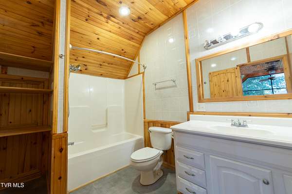 Beautiful East Tennessee Mountain Views A paved driveway through mature trees leads to a 2 bedroom A-Frame barndominium. Situated on 3.6+/- picturesque acres, this home features floor to ceiling tongue and groove throughout. The first floor is complete with a bedroom, full bath, and laundry hooks-ups. The kitchen and living room open up to a large covered porch and outside half bath, perfect for entertaining. The second floor features an expansive window with majestic mountain views, an additional full bath, and walk in closet. Outside you will find a covered picnic area and wooden fencing lining the property. Whether you are in the market for a gorgeous forever home or to expand your short term rental portfolio, this property is a perfect fit. Information in this listing obtained from third party and/or tax records. Buyer(s)/ Buyer's Agent to verify all information.