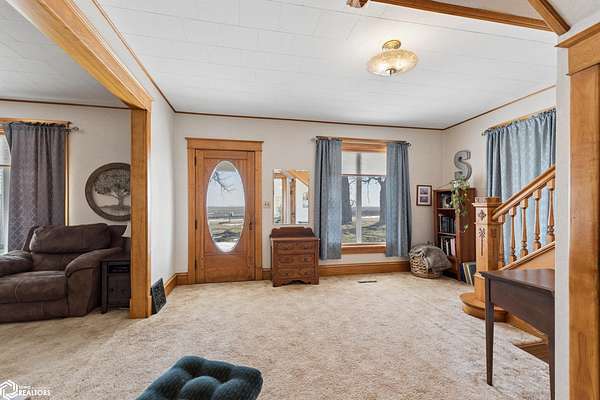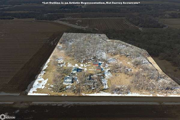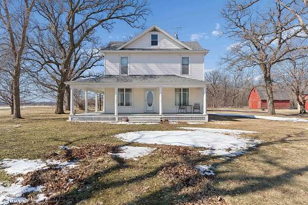 COUNTRY LIVING, REIMAGINED. JUST 10 MINUTES FROM DOWNTOWN! A charming 2 story home set on 14.2 acres offers the kind of space, character, and freedom that's getting harder to find. A wrap around porch invites slow mornings and sunset views, while inside you'll find timeless details including an exposed hardwood staircase in the foyer and hardwood floors waiting beneath the carpet. The main floor features a convenient half bath and comfortable living spaces and a bonus office or additional living space that adds flexibility for everyday life that feel both open and grounded. Upstairs, you'll find four bedrooms along with a renovated bathroom that brings a fresh, modern touch to the home's classic style. Outside, the land truly shines with a peaceful stream running along the north edge, mature trees, and room to roam. A 3 stall detached garage provides plenty of space for vehicles, hobbies, or storage, while two corn cribs and a second uninhabitable structure offer additional utility and potential. This is the kind of property where you can spread out, create, and enjoy the quiet of rural living-reach out to see it for yourself.