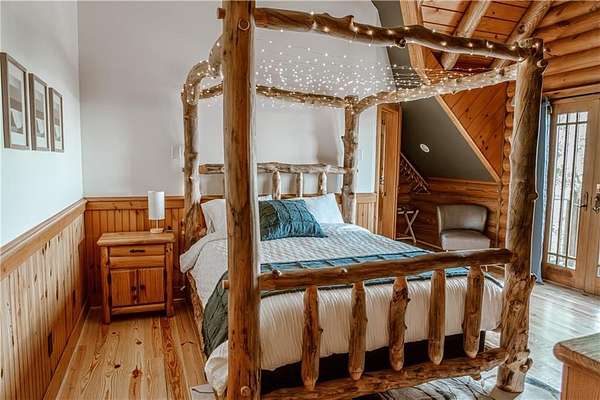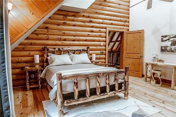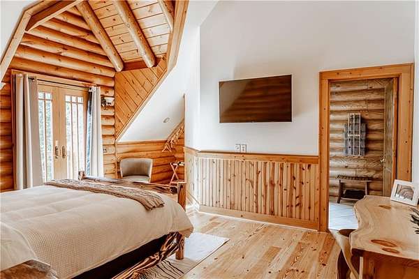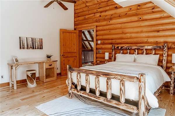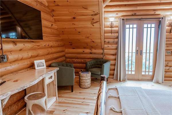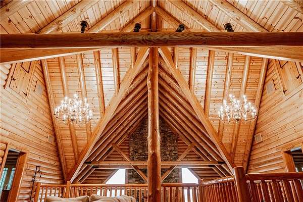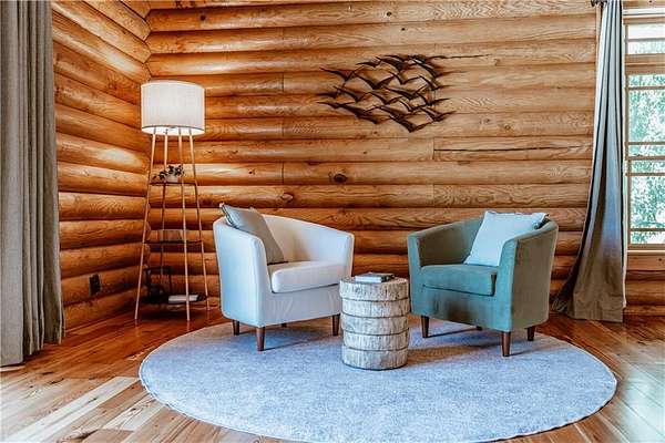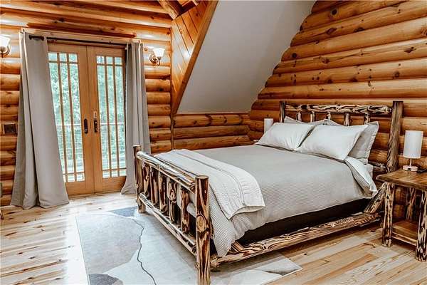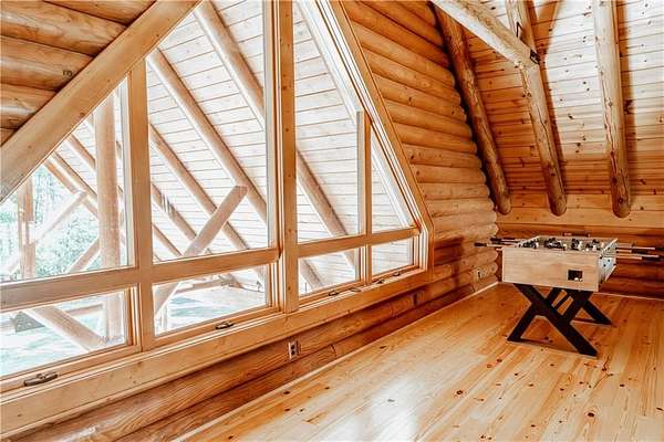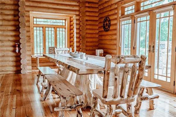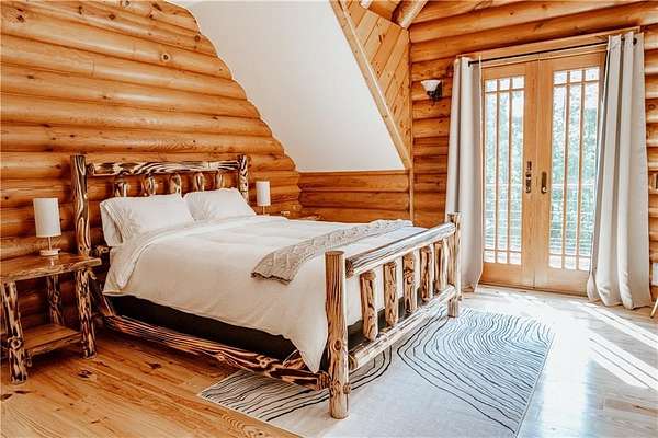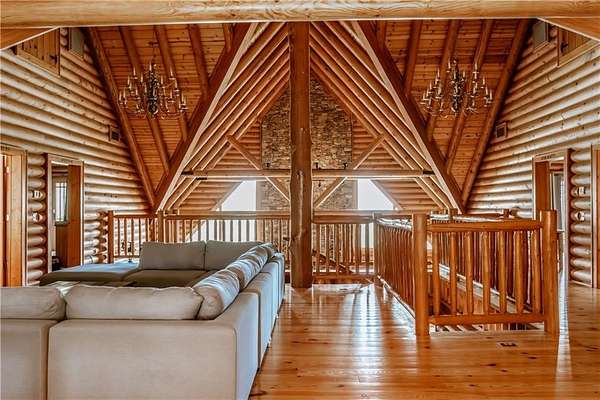 BITCOIN is acceptable to seller for purchase!! Welcome to Apple Pie Lodge, a magnificent authentic luxury log home w a 50-year slate roof on 3.48 beautiful acres with long range views. A large front entry has an oversized Porte Cochere and a striking Foyer with 8' pine and leaded glass doors, hand crafted half log staircase, and a dramatic 40' center beam. The Great Room has soaring ceilings, timber beams, wall of windows to frame your rear outdoor views and a towering Rumford fireplace w a centuries old mantle. High end multi point locking doors, architectural casement windows and recently refinished heart of pine hardwood floors. Chef's gourmet kitchen with new backsplash, massive granite island, Thermador professional range, 2 built in freezer drawers, 2 built in warming drawers, 2 dishwashers, Sub Zero refrigerator, walk in pantry with newly installed shelving, and a brand-new ice maker. Primary suite on the main floor has a sitting area, newly tiled shower w custom built glass door, jetted tub, and walk in closet. The upstairs area has a large gathering room, 4 bedrooms, 4 full baths w all newly tiled showers. Home features 10 newly installed Nest thermostats for individual control of each room and remote access. The daylight Terrace level has new flooring throughout w a large living space, kitchenette w newly installed shelving, bedroom w full bath, plus a newly remodeled former garage space which now includes a sauna, elegant plunge tub which opens up to a custom-built Zen Garden, boasting newly installed Astro Turf, custom built multi-level platforms w sensor-controlled lighting and a 6-person Spa/Hot Tub. Veranda and deck w outdoor Fireplace look out over a peaceful pastoral setting w long range mountain views. This home is conveniently located to Gainesville, Commerce, Cornelia and the North Georgia Mountains.