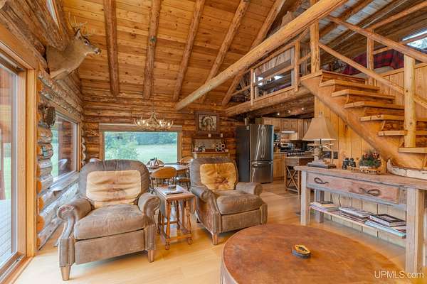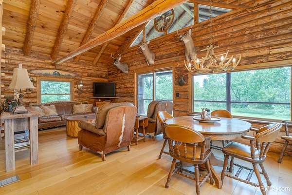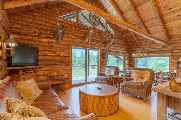 With so much charm, beauty, and convenience, you'll forget this is a camp! Gorgeous and cozy, this well-appointed log cabin is nestled on a prime 80 acre parcel in big buck country, bordering hundreds of acres of state land to the west. After a long day out in the woods, what a treat it will be to relax in the beautifully appointed kitchen with granite counters, kick back and watch some football, or gather around the dining room table for hunting stories and card games before heading up to the loft bedroom. Additional features include 7-inch white oak floor planks throughout, vaulted beamed ceilings, large windows to soak up the views of the outdoors, metal roof, and Trex decking on both the front porch and the back deck. Downstairs, the full basement is well-lit and immaculate, with a workbench and laundry area. The oversized detached garage with metal roof offers secure storage for recreational equipment, ATVs, and more. All appliances and most furnishings are included!