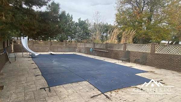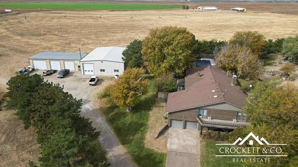 Est $4,066/moHUGE Price Improvement! Your Oasis on the Plains! This 4 bed, 3 bath home sits on 10+ acres on paved roads less than 7 miles from Garden City. The home features 3300 sq ft above grade with a sunroom, spacious family room in walk-out basement, 2 car attached garage. Across the driveway is a 44' X 24' detached 3 car garage. Patios, a deck, a water feature and inground pool. Work shops include a 63' X 35' 3 bay shop. The 75' X 50' shop features in floor heat, a half bath, 2 16' doors, office and storage space. Both shops have 3 phase electric. This property selling in its present and existing condition.