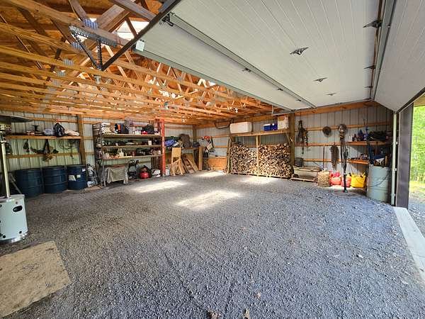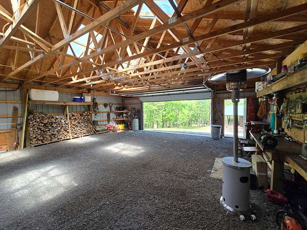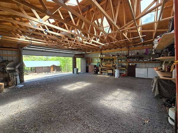 There is a 30 ft x 30 ft shop building with metal exterior, walk through door and large roll-up door. The shop has a nice work bench and storage areas around the perimeter. Electric service and lighting are installed to the shop. The shop is designed with several skylight panels that provide a lot of natural lighting inside the shop building.