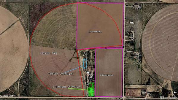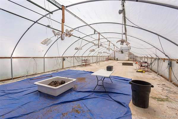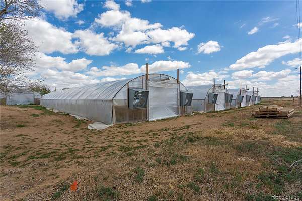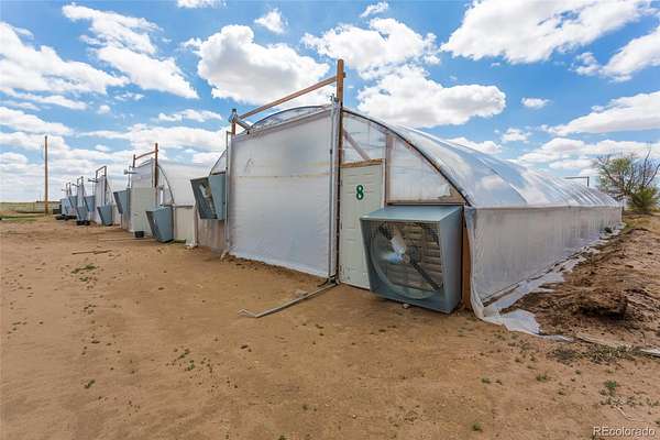 Farm and Homestead opportunity: 160 acre turn key fully functional farm with THREE homes in Colorado Springs’ Pikes Peak Enterprise Zone, new owner can receive substantial tax credits for various economic development activities! Extensive list of structures and equipment included! Main Farmhouse is 3 bed 2 bath, 2,620 sf. The Cottage home is 1 bed 1 bath and 510 sf. The NEW manufactured home, completed January 2025, is 4 beds, 3 baths, and 2,280 sf – plus 3 campers for seasonal employees! Major features include a 20,000 sf Pole Barn (5 yrs old), 11 greenhouses totaling over 36,000 sf completed in 2019 with LED lighting, several other barns & steel buildings, multiple storage sheds, and a steel silo/storage building. Irrigation for 120 acres of the crop producing acreage is provided by a center pivot and drip irrigation, fed by 2 new well pumps. An extensive list of equipment includes tractors, Swathers, Mowers, Cultivators, drip irrigation row makers & removers, cultipackers, air compressors, and more – see brochure for complete list. Newer upgraded electrical service to many structures and internet is available in all 3 homes and the pole barn. Six frost-free water hydrants protect your assets. Situated about 40 min southeast of