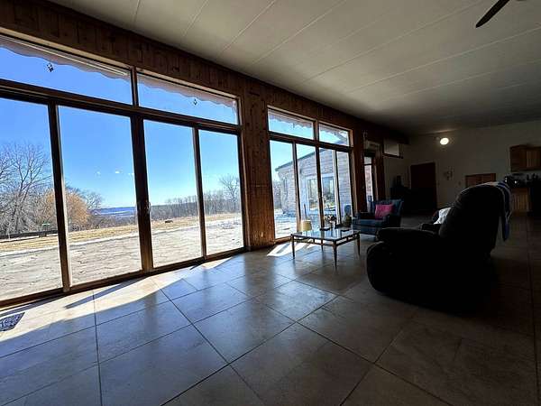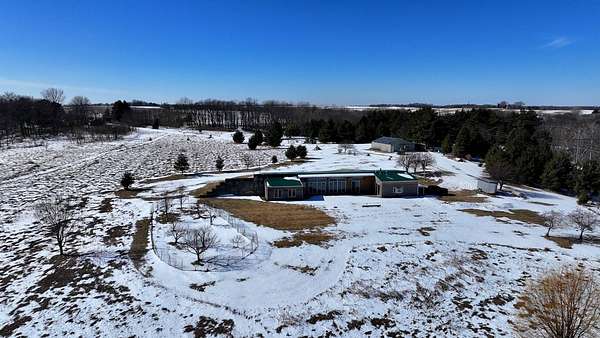 Perched high in the rolling bluffs of the Mississippi River Valley, 21555 699th St in Wabasha offers 33.35± private acres overlooking historic downtown Wabasha and the river valley below. Positioned at the end of a quiet dead-end road, this property delivers elevated panoramic views, mature timber, and the kind of privacy that is increasingly difficult to find in bluff country. Built in 1999, this thoughtfully designed earth berm home offers 2,175 finished square feet all on one level, built for efficiency and year-round comfort. In-floor radiant heat provides consistent warmth, while the wood-burning fireplace creates a welcoming focal point during Minnesota winters. Large windows capture sweeping valley scenery and bring natural light into the living spaces throughout the day. The home features two bedrooms, two full bathrooms, and seven total rooms with an open kitchen and dining layout that flows naturally for everyday living and entertaining. Stainless steel appliances and natural stone floors complement the practical, accessible layout with no interior or exterior stairs. The 33.35± acres include heavy tree coverage and approximately 15.5 wooded acres, creating privacy, strong wildlife habitat, and year-round recreational opportunity. This property sits in a highly regarded area for mature whitetails and provides excellent opportunity for turkey hunting, making it equally appealing as a recreational retreat or full-time residence. Outbuildings and improvements add exceptional functionality. A 50x30 shed with a concrete floor and lean-to offers substantial storage or workspace, while a 40x25 shed with a gravel base provides additional room for equipment and recreational gear. A dedicated shooting shed with an established rifle range is set up and ready to use. For those looking to live more self-sufficiently, a small garden shed sits next to fenced raised garden beds ideal for growing fruits and vegetables. The property also features a well-manicured, fenced grove of mature fruit trees that are consistent producers, adding both beauty and practical harvest potential. An attached garage and a combination of concrete and gravel driveways provide reliable access and convenience year-round. This is a rare opportunity to own significant bluff-country acreage with commanding views, recreational depth, functional improvements, and the ability to truly enjoy the land - all just minutes from Wabasha. Property Address: 21555 699th Street, Wabasha, MN 55981 Property Features: -Views for miles -Great Hunting -Private -Fruit Trees -Raised Garden Beds -Storage -Shed With lean-to -Mature Timber -Trail System -Great Location