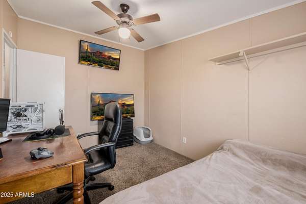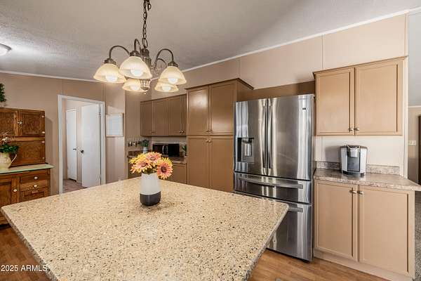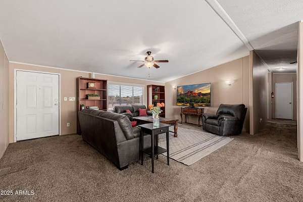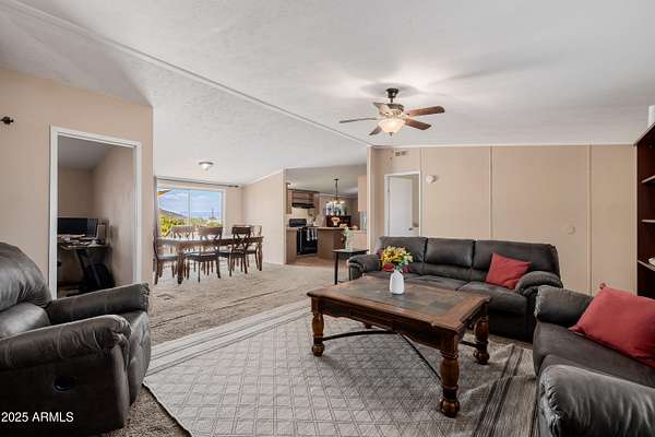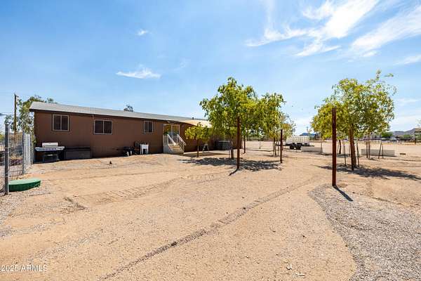 Welcome to your own slice of desert paradise! This beautiful Champion home sits proudly on 2.3 acres of wide-open space with horse privileges, so go ahead-bring your four-legged friends! With 4 spacious bedrooms, a bonus room, and 2 baths, there's plenty of room for everyone to stretch out and enjoy the good life. Step inside and enjoy a light, airy floor plan, walk-in closets in every bedroom, and convenient inside laundry (because who wants to trek outside with laundry baskets?). This home is permanently affixed and ready to move in-no fuss, just freedom. Surrounded by the stunning San Tan Mountains, you'll enjoy breathtaking views and can walk to the State Park for hiking, horseback riding, or just soaking in the Arizona sunsets. You're only minutes from shopping and and surrounded by beautiful custom homes, so you get that peaceful rural vibe without giving up modern convenience. The property is fenced and animal-ready, so whether it's ponies, goats, or backyard chickens, this place is calling your name.